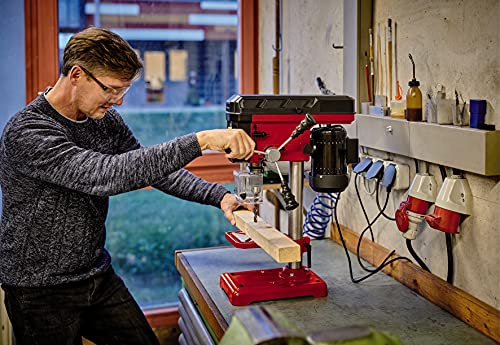 ["Présentation :Laperceuse à colonne EINHELL - TC-BD 450 - 450W - 50mm\xa0est un outil pratique et précis pour vos travaux de perçage. Sa grande surface portante offre une grande précision de coupe pour les pièces de grande taille. Adaptez la vitesse de 600 à 2650 tr/min sur 5 niveaux en fonction de vos besoin. La butée de profondeur réglable permet des\xa0perçages précis. La perceuse dispose d'un mandrin à couronne dentée et d'un mandrin B16 qui lui permettent de recevoir des forets à cône Morse et les forets standards. La broche de perçage est sur roulement à billes pour garantir une utilisation facile ainsi qu'une longue durée de vie de l'outil. Pour un travail en toute sécurité la perceuse dispose d'un pare-copeaux rabattable et d'un interrupteur marche/arrêt avec déclencheur à tension nulle pour prévenir un démarrage intempestif en cas de panne de courant.\xa0Einhell est une marque allemande créée en 1964 qui se veut accessible à tous les passionnés de bricolage avec une large gamme d'outils pour la maison et le jardin, afin de réaliser soi-même ses projets.Avantages :Outil précis adapté pour les matériaux tendres ou dursGrande surface portante5 vitesses de perçage\xa0\xa0Table de perçage modulable : pivote jusqu'à 90° et s'incline jusqu'à 45°Sécurité : interrupteur de sécurité lors des coupures de courant et pare-copeaux rabattableCaractéristiques :Puissance : 450 WTension :\xa0220 VPortée :\xa0104 mmDiamètre minimum de foret : 1,5 mmDiamètre maximum de foret : 13 mmPlage de rotation (table de perçage) : 90°Profondeur de perçage : 50 mmVitesse de rotation minimum : 600 tr/minVitesse de rotation\xa0maximum : 2650 tr/minNombre de vitesses : 5Poids :\xa012,99 kgRéf.\xa04520592Conditionnement :Une\xa0perceuse à colonn", None]