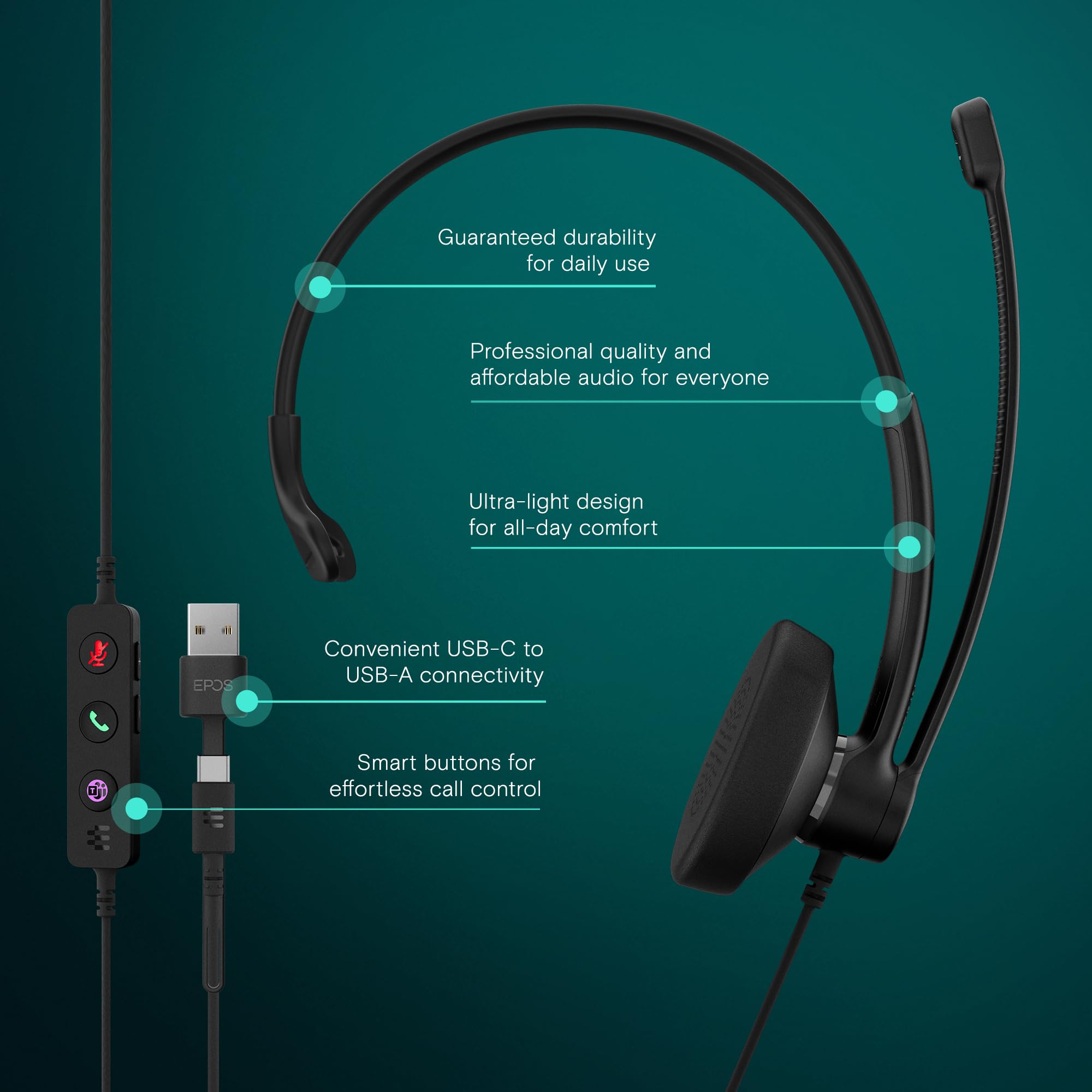 - Casque professionnel EPOS IMPACT 100 MS Mono USB-C+A