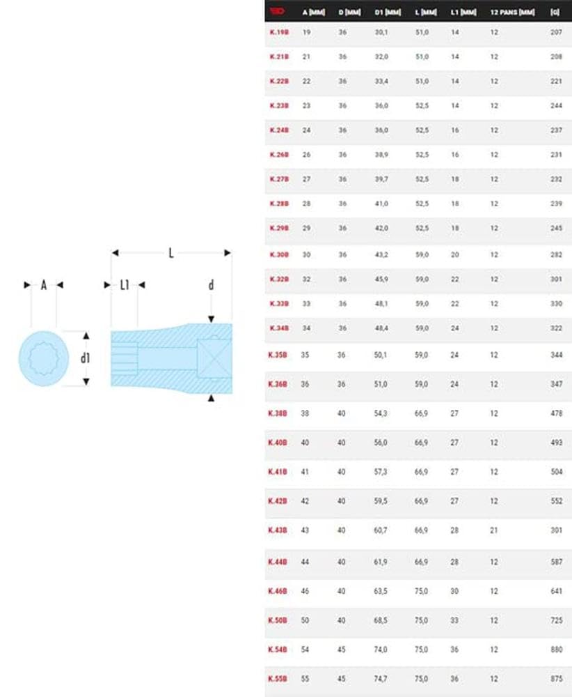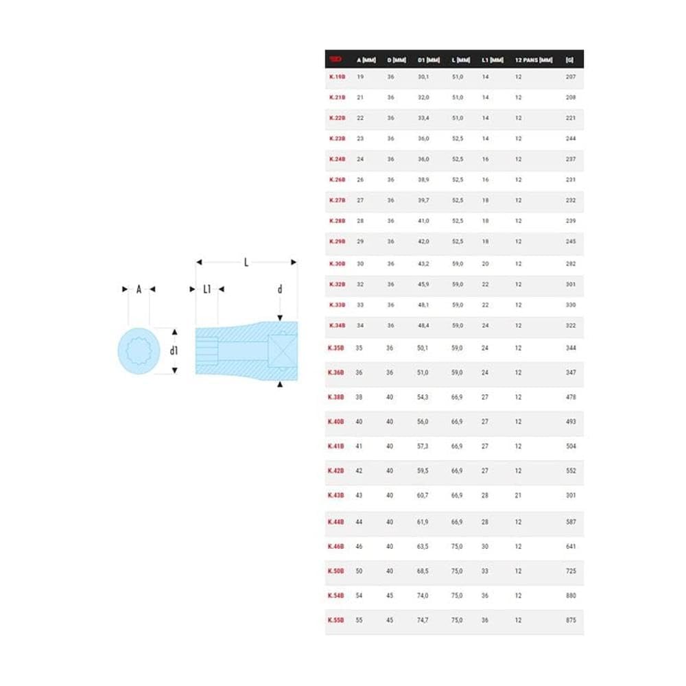 Le système 12 points permet un meilleur grip sur les écrous et boulons, réduisant ainsi le risque d’arrondir ou d’endommager les fixations.