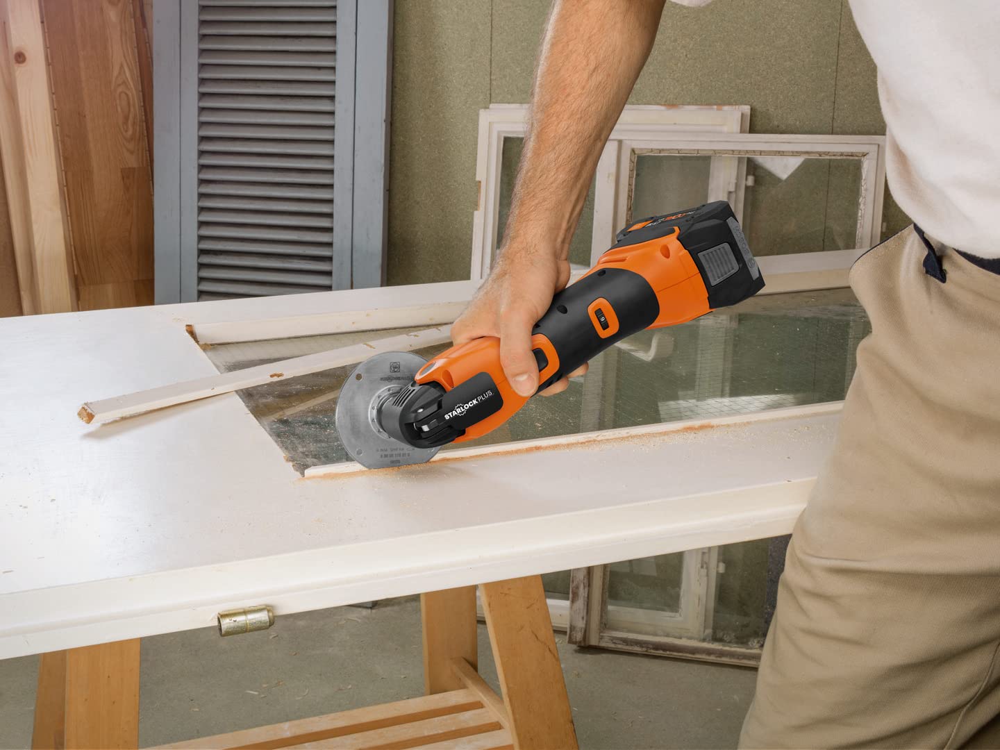 ["Idéal pour l'aménagement et la rénovation, le Multimaster AMM 500 Plus Top est une machine polyvalent rapide avec un moteur puissant PowerDrive sans balais à rendement très élevé. La technologie SafetyCell protège la machine contre la surcharge, la surchauffe ou la décharge profonde grâce aux batteries lithium-ion avec surveillance individuelle des cellules. Il possède aussi un système anti-vibrations assurant un travail sûr et agréable sur le long terme avec très peu de vibrations et un excellent amortissement du bruit. En outre, le porte-outil StarlockPlus fournit à la machine une vitesse de travail plus rapide et une précision accrue grâce à une transmission de puissance maximale sans perte. Enfin, le système QuickIN permet de changer d'accessoire en moins de 3 secondes grâce au système de serrage rapide FEIN.\n\xa0\nCaractéristiques techniques\xa0:\n\nCompatibilité de batterie\xa0: lithium-ion/lithium-ion HighPower\nInterface de batteries\xa0: 18 V\nOscillations\xa0: 11000 - 18500 trs/min\nPorte-outil\xa0: StarlockPlus\nChangement d'accessoire\xa0: QuickIN\nAmplitude\xa0: 2 x 1,7°\nVolume\xa0: 24215 cm3\nLongueur\xa0: 445 mm\nHauteur\xa0: 152 mm\nPoids brut\xa0: 4,5 kg\n\n\xa0\nValeurs des vibrations et des émissions sonores\xa0:\n\nNiveau sonore LpA\xa0: 74 dB\nIncertitude de la valeur de mesure KpA\xa0: 3 dB\nNiveau de puissance acoustique LWA\xa0: 85 dB\nIncertitude de la valeur de mesure KWA\xa0: 3 dB\nValeur de crête sonore LpCpeak\xa0: 87 dB\nIncertitude de la valeur de mesure KpCpeak\xa0: 3 dB", None]