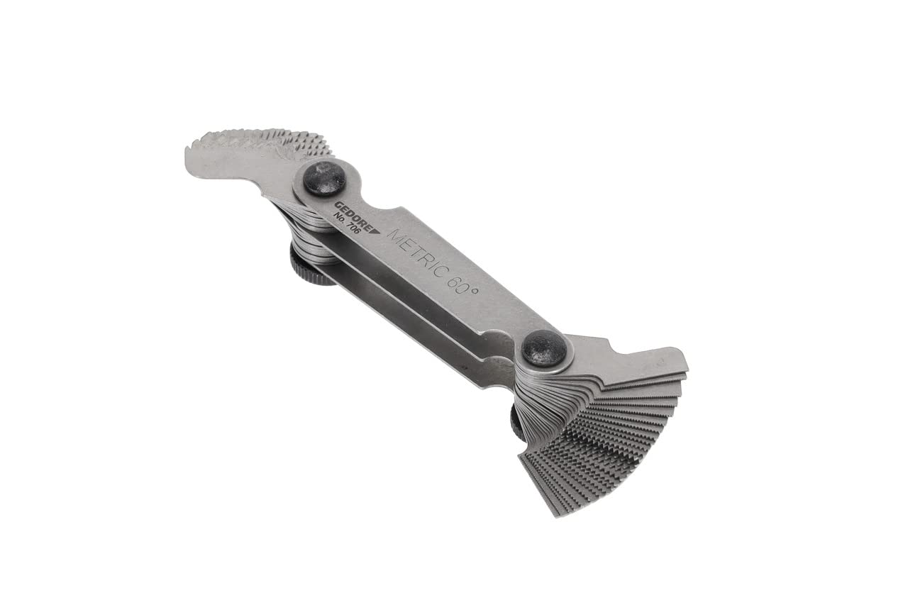 La force majeure de la GEDORE Gewindelehre 706 réside dans sa capacité à mesurer simultanément les filetages métriques et Whitworth. Elle intègre un jeu complet de lames pour les pas métriques allant de 0,25 mm à 6,0 mm, couvrant ainsi un spectre très large d'applications industrielles. Parallèlement, elle offre des lames pour les filetages Whitworth, avec des densités allant de 4 à 62 filets par pouce (TPI). Cette double fonctionnalité rend la GEDORE Gewindelehre 706 un outil universel, réduisant le besoin de plusieurs instruments spécialisés et optimisant l'efficacité de votre boîte à outils.