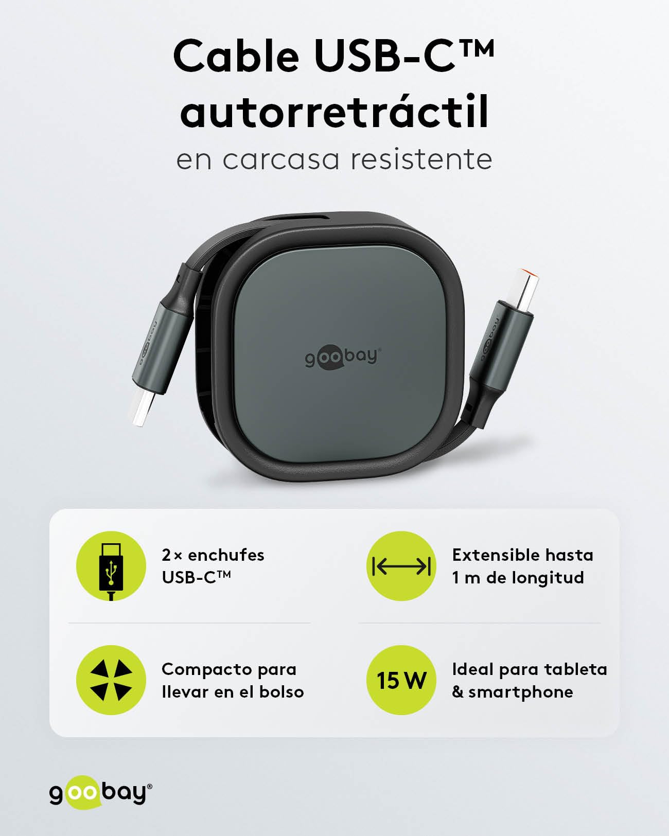 Goobay Cable USB 2.0 type C rétractable (Noir)