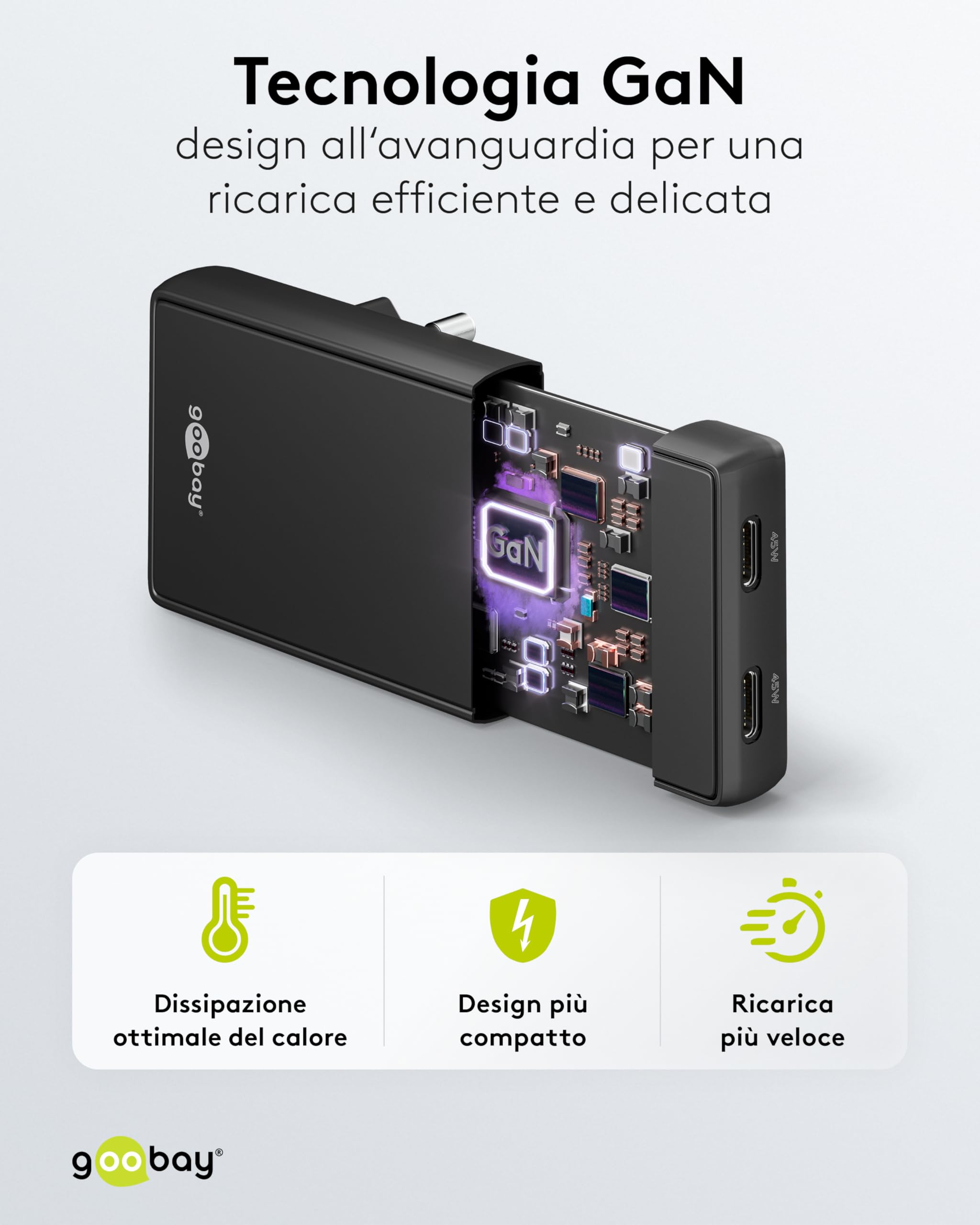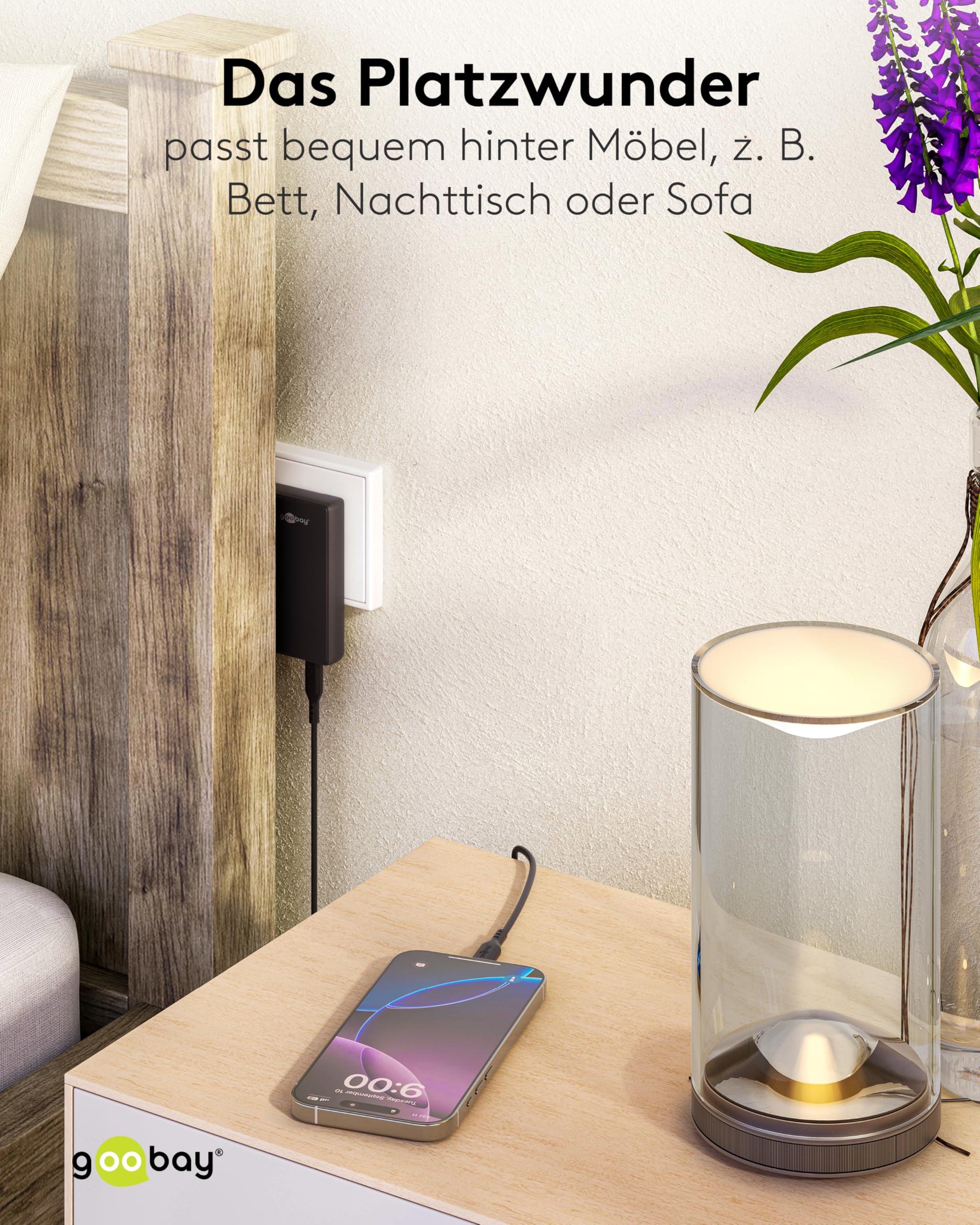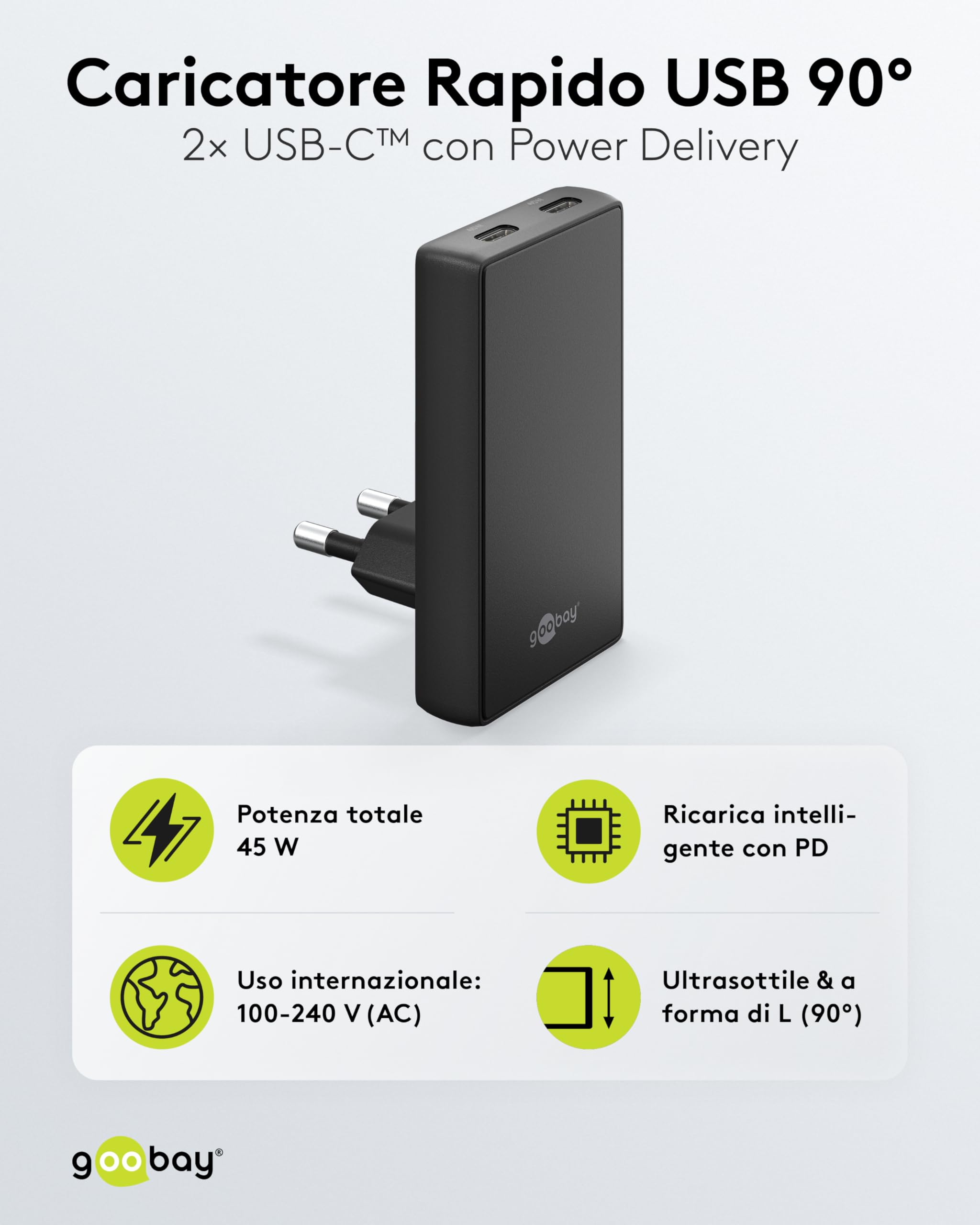 Goobay Chargeur secteur Fast Charger 90° Flat 2x USB-C 45W (Noir)