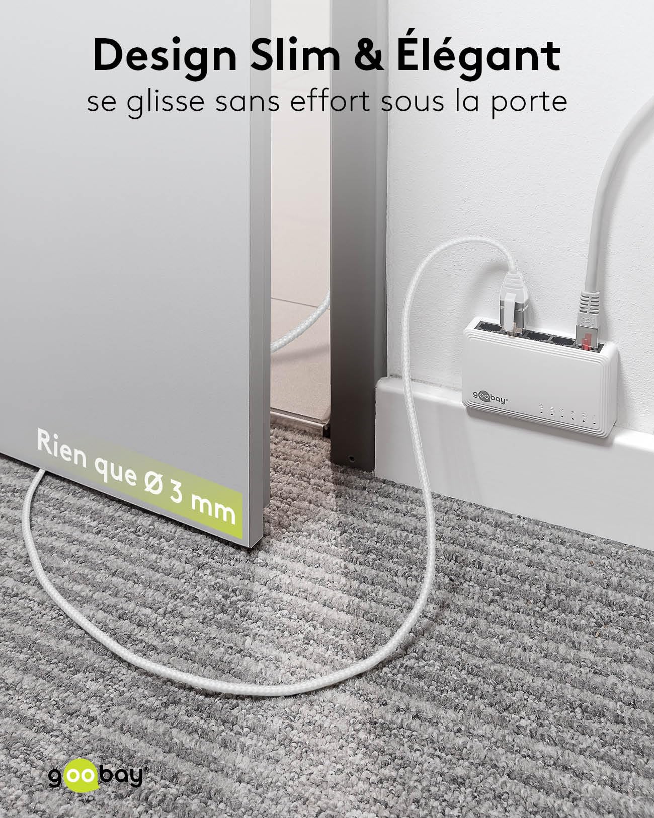 Pensé pour accompagner vos appareils mobiles sans encombrement, le Goobay Ethernet-Adapterkabel arbore un profil fin et léger.