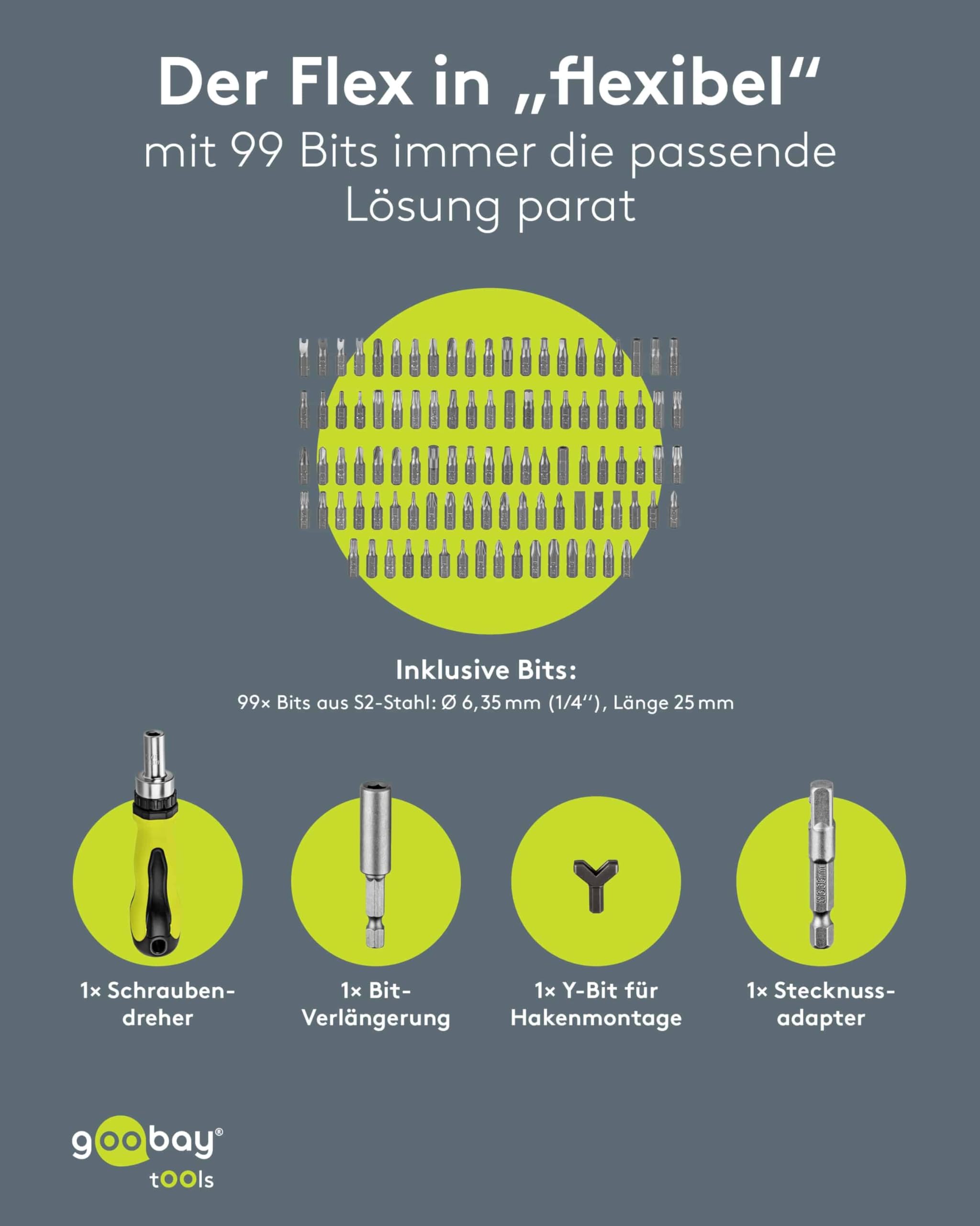 Le kit est livré dans un coffret compact et robuste, permettant de ranger chaque pièce à sa place avec clarté. Cette organisation évite les pertes et vous fait gagner un temps précieux lors de vos interventions. La taille réduite du coffret permet de l’emporter sans gêne sur un chantier ou pour un usage domestique. Ainsi, le Goobay Kit de Tournevis 100 pièces devient un compagnon idéal toujours à portée de main.