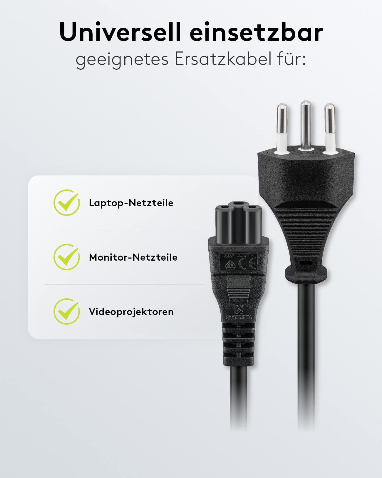 Goobay Câble d'alimentation Secteur Suisse Type J vers C5 pour Chargeur Ordinateur Portable