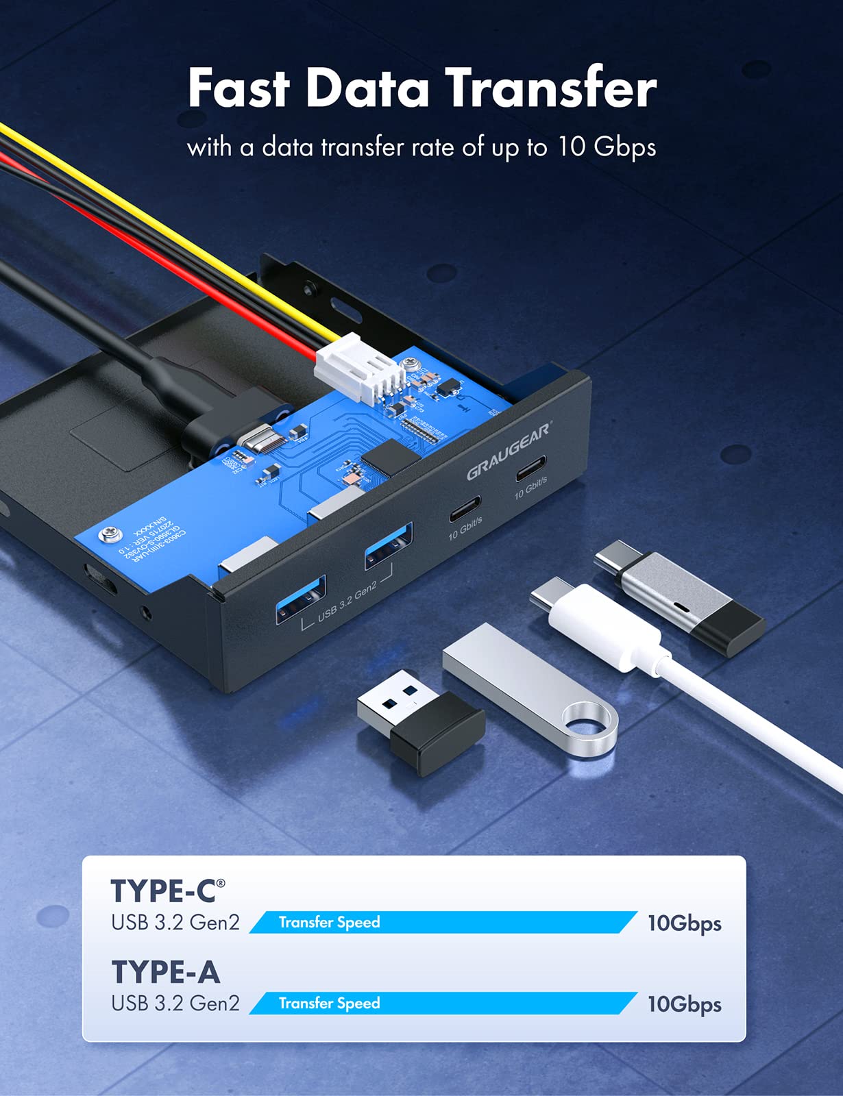Graugear GRAUGEAR Multi Frontblende 4-Port USB-HUB, 2x USB-C,2x USB-A retail