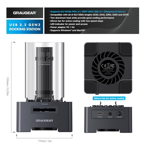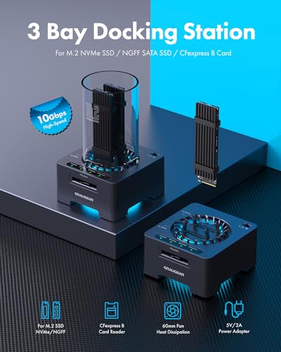 ☆ Nom du produit : Graugear Docking + Kartenleser pour 1x M.2 NVMe, 1x M.2 NGFF, 1x CF-Express