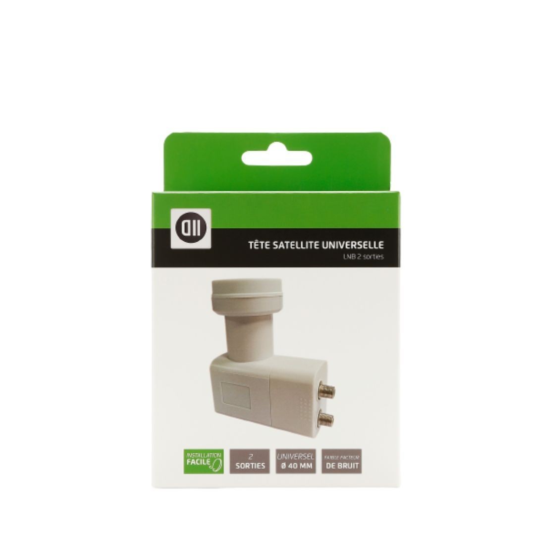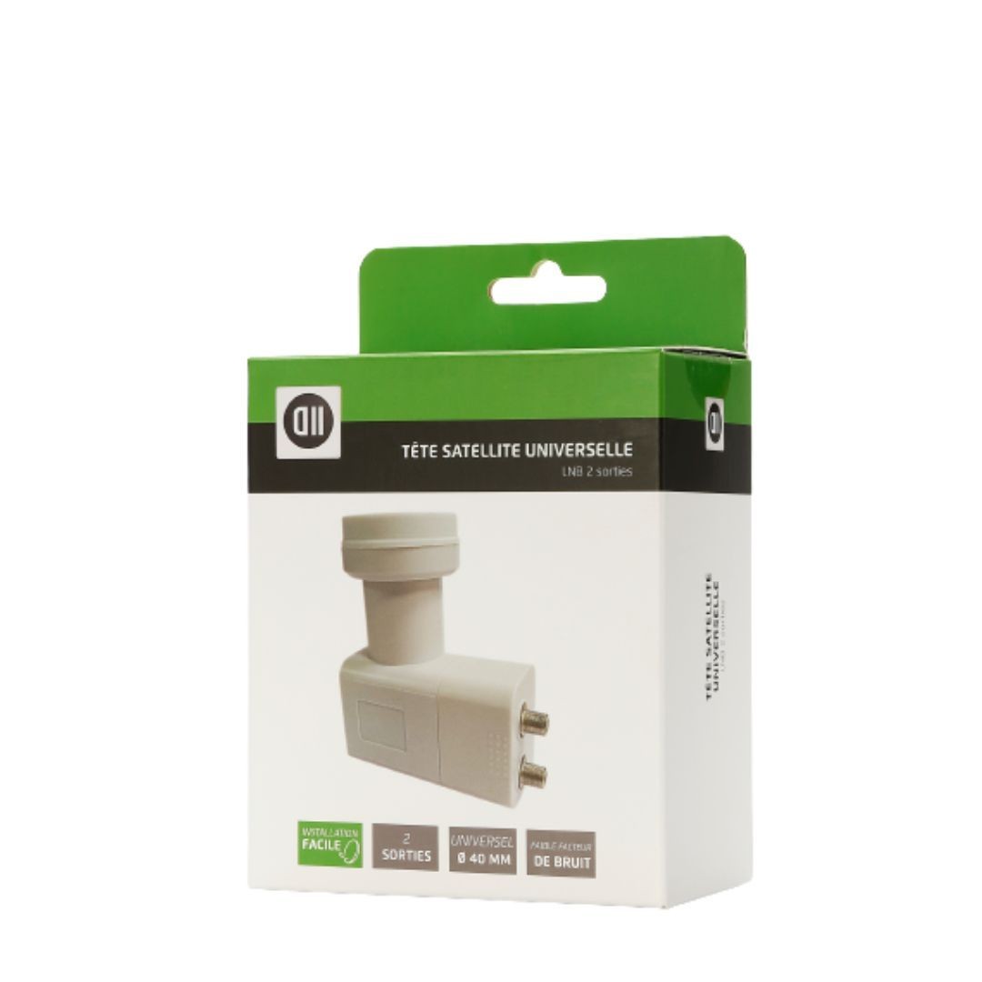 D2 Diffusion Tête LNB Twin 2 Sorties Universel Blanc Fixation 40 mm