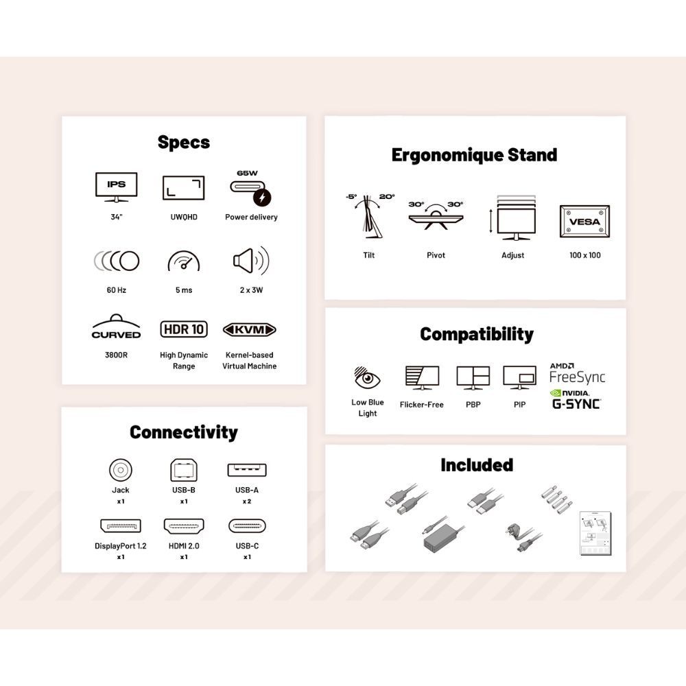 - Résolution maximale : UWQHD 3440 x 1440 pixels