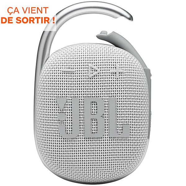 Enceinte Bluetooth JBL Clip 4 Blanc 10 h,5 Watts,200 g,0,Bluetooth JBL CLIP 4 - Enceinte bluetooth portable étanche L'enceinte portable CLIP 4 de JBL associe un design moderne à une taille compacte et au Son Original JBL pour vous offrir des heures de musique sans interruption. Profitez de jusqu'à 10 heures d'autonomie et diffusez votre musique depuis votre appareil téléphone ou votre tablette grâce à la technologie bluetooth. Petite et robuste, cette enceinte tient dans votre main et possède un mousqueton, idéal pour l'accrocher à votre sac et partir à l'aventure. Que vous soyez à la plage ou sur le bord d'une piscine, la CLIP 4 est résistante aux éclaboussures et à la poussière grâce à sa conception étanche. Elle est disponible en plusieurs couleurs audacieux et est inspirée de la mode urbaine. Trouvez celle qui combine le mieux avec votre style ! Spécifications techniques: Couleur : blanc Dimensions : 86,3 mm x 134,5 mm x 46 mm Poids : 0,239 kg Puissance de sortie : 5 W RMS Réponse en fréquence : 100 Hz à 20 kHz Rapport signal/bruit : > 85 dB Autonomie en lecture : jusqu’à 10 heures (selon le niveau du volume et le contenu audio) Type de batterie : lithium-ion-polymère 3,885 Wh Temps de charge de la batterie : 5 heures (5 V/500 mA) Version Bluetooth : 5.1 Profils Bluetooth : A2DP 1.3, AVRCP 1.6 Puissance de l’émetteur Bluetooth : ≤ 10 dBm (puissance isotrope rayonnée équivalente, PIRE) Livraison : 1x Enceinte bluetooth portable JBL CLIP 4, 1x câble USB type C, 1x guide de démarrage rapide, 1x fiche technique sécurité JBL by Harman Harman est une compagnie vouée à la création de solutions qui simplifient l’interaction entre les personnes et la technologie. Les origines de JBL, marque appartenant à Harman, remontent à l’âge d’or du cinéma. Depuis, les enceintes JBL demeurent un choix de prédilection pour une large majorité de salles de cinéma dans le monde entier, gage d’une qualité de son exceptionnelle. L’enceinte portable CLIP 4 de JBL convainc par son design moderne, sa taille compacte, sa construction robuste, et par le son JBL Original Pro aux basses dynamiques Emportez votre musique où que vous alliez avec cette enceinte ornée de détails distinctifs inspirés de la mode urbaine. Disponible en une gamme de couleurs audacieuses, elle possède un look unique Étanche selon la norme IP67, cette enceinte est résistante à l'eau et à la poussière / Diffusez votre musique depuis votre téléphone portable ou tablette avec la diffusion sans fil via Bluetooth Un design ultra portable : Accrochez cette enceinte à votre sac ou à votre ceinture grâce au mousqueton intégré et emportez votre musique partout avec vous Livraison : 1 x JBL CLIP 4 Enceinte Bluetooth portable / Dimensions : 86,3 mm x 134,5 mm x 46 mm / 1 x guide de démarrage rapide / 1 x fiche de sécurité / 1 x câble USB Type C – Blanc