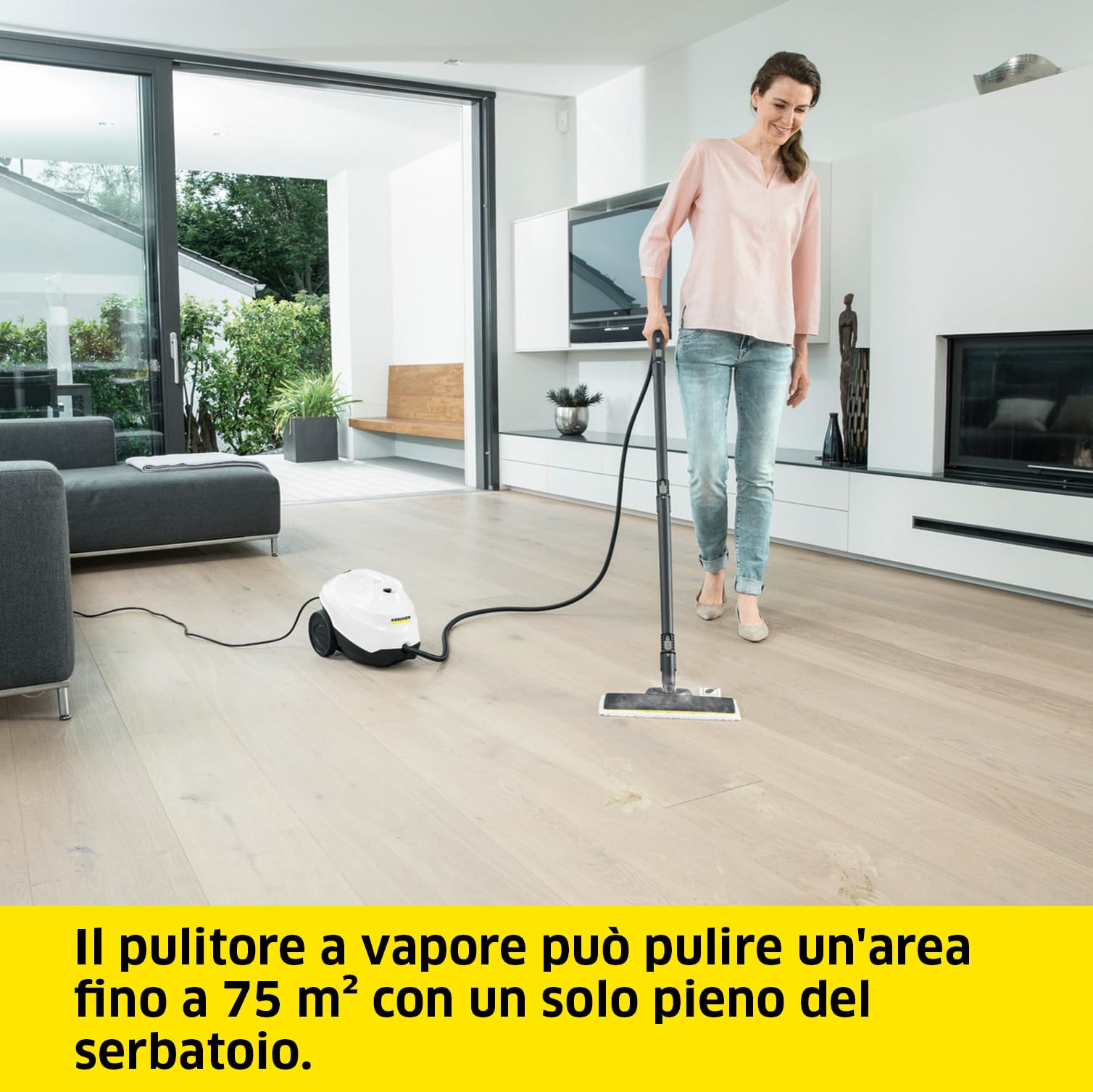 Grâce à sa vapeur continue, le Kärcher SC 3 Easy Fixation permet de traiter diverses surfaces : carrelages, sols stratifiés, plans de travail, sanitaires et même certains tissus d’ameublement. Son débit de vapeur réglable offre un confort d’utilisation important, adapté à chaque type de matériau. Le réservoir amovible de 1 litre se remplit facilement et sans temps d’attente, vous offrant une autonomie prolongée et une grande flexibilité.