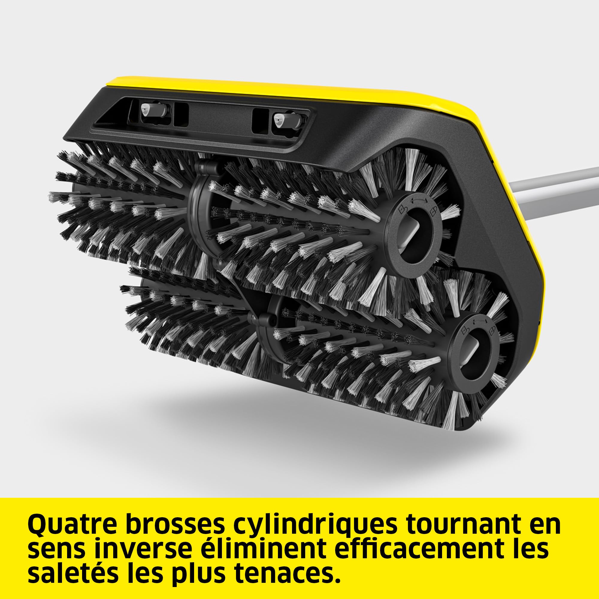 Le Kärcher Terrassenreiniger PCL 6 se distingue par son poids équilibré et sa poignée ergonomique, offrant un confort d’utilisation prolongé. Sa tête pivotante facilite l’accès aux angles difficiles et les zones sous les meubles ou structures basses. Sa largeur de nettoyage de 380 mm permet d’atteindre un grand espace sans effort excessif, tandis que sa structure en plastique renforcé résiste aux chocs et aux éclaboussures. Ces caractéristiques simplifient considérablement le nettoyage des grandes surfaces en extérieur.