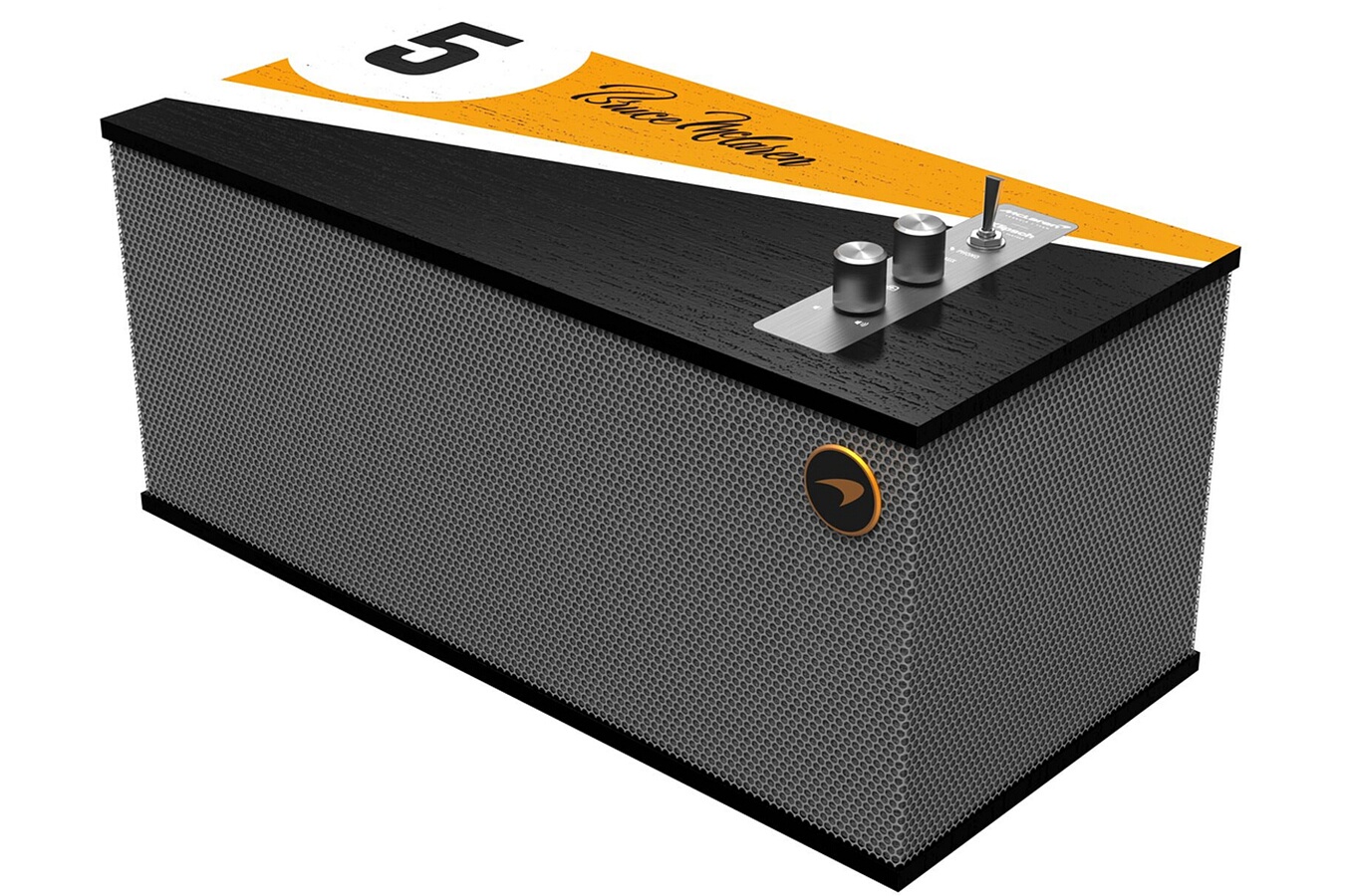 L'édition One McLaren incarne l'esprit de la Formule 1 avec son design inspiré par la voiture de course emblématique de Bruce McLaren. Les haut-parleurs de 57,15 mm à large bande et le boomer de 114,3 mm offrent des basses profondes et une clarté sonore remarquable. La grille en métal apporte une touche industrielle chic à l'ensemble.