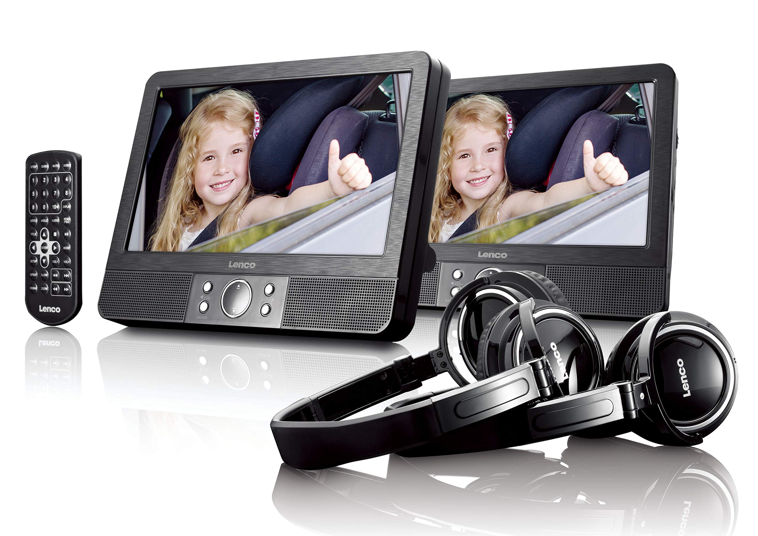 LENCO DVD 9 pouces à double écran avec supports et écouteurs Noir