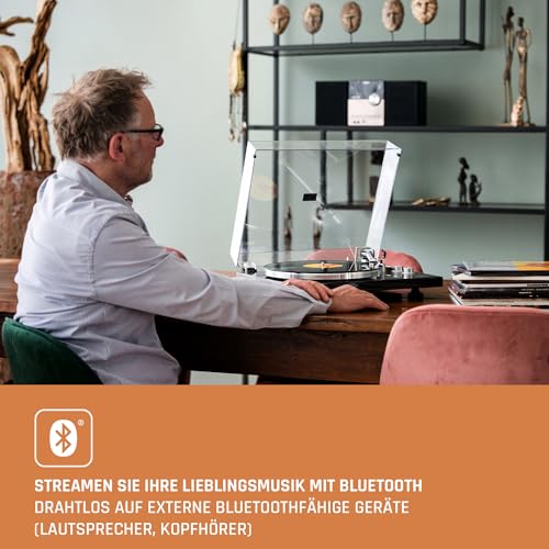Le LENCO Lecteur de disques avec transmission Bluetooth® Marron foncé combine un aspect classique avec la modernité grâce à son boîtier en bois massif qui offre une finition naturelle et chaleureuse. Ce choix de matériau garantit non seulement un look vintage raffiné, mais aussi une meilleure acoustique grâce à ses propriétés d’absorption des vibrations. Cette conception soignée convient parfaitement aux intérieurs contemporains ou rétro, apportant une véritable touche d’élégance dans votre salon.