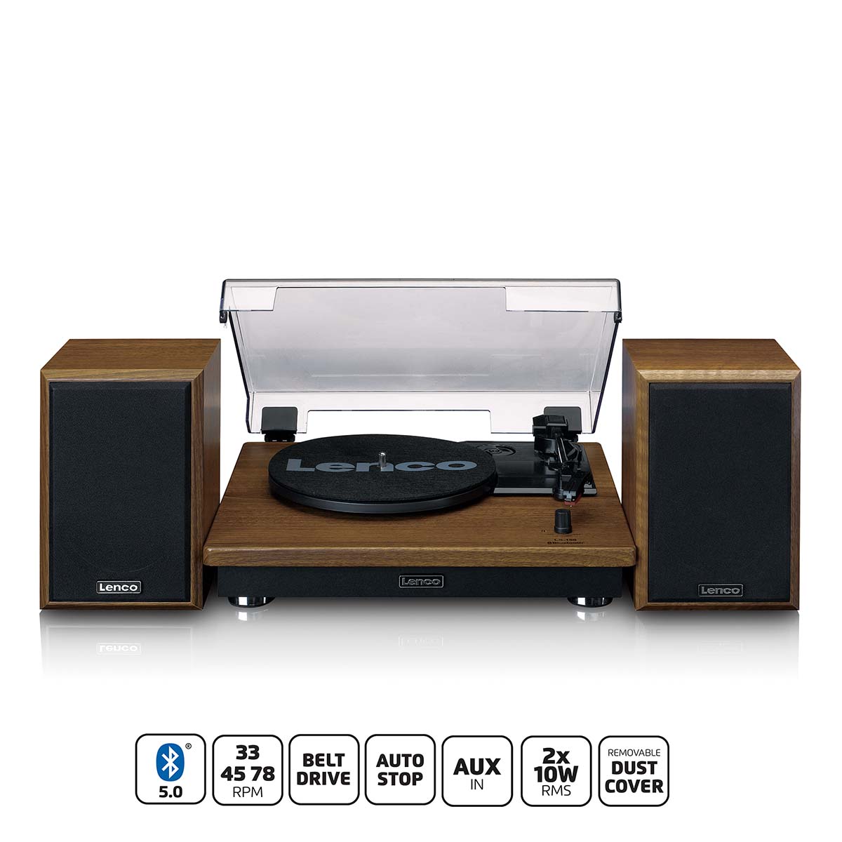 LENCO Plaque tournante avec réception Bluetooth et deux haut-parleurs en bois