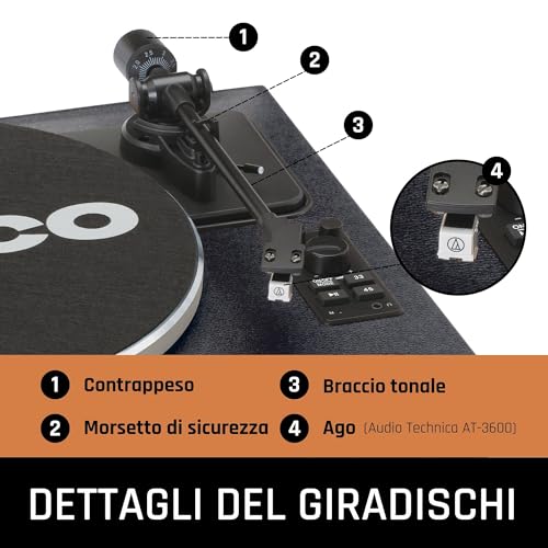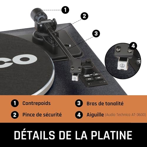 Vous pouvez régler la vitesse et lire ainsi facilement des 33 tours et des 45 tours. La platine LS-430 est entraînée par une courroie et équipée d’une cellule Audio-Technica de qualité supérieure, la qualité audio est donc optimale et les 33 tours restent plus longtemps en bon état. Le bouton marche/arrêt vous permet d’arrêter la lecture à tout instant et de reprendre plus tard là où vous vous étiez arrêté. La platine LS-430 de Lenco est équipée d’un préamplificateur qui peut être activé ou désactivé. La platine dispose également d’une commande de variation de vitesse qui permet de régler facilement la vitesse de lecture à la main. Il y a aussi une commande de tonalité qui permet de régler les tonalités hautes et basses.