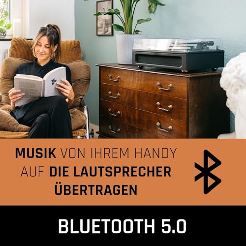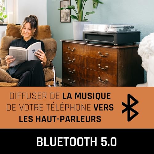 LENCO Platine vinyle avec 4 haut-parleurs intégrés et réception bluetooth Noir