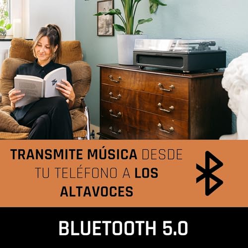 La platine LS-430 de Lenco est une platine à haut-parleurs intégrés. Les quatre haut-parleurs, deux de 15 Watts et deux de 10 Watts, assurent un son bien équilibré. La platine est simple d’utilisation, il vous suffit de brancher la fiche dans une prise électrique pour profiter de vos 33 tours préférés. Vous pouvez également lire la liste de votre smartphone ou de votre tablette en streaming sur les haut-parleurs de la platine via le Bluetooth® 5.0. Vous souhaitez vous isoler et vous détendre au son de vos morceaux préférés ? Il vous suffit de raccorder un casque.