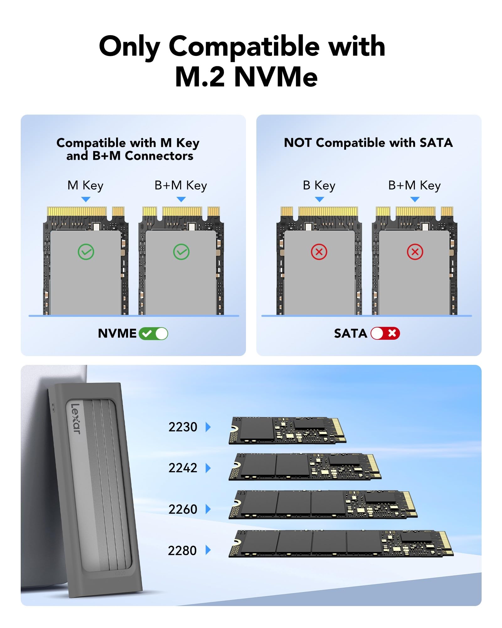 Lexar Boitier externe USB 3.2 E300 - NVMe M.2 Type 2280 (Argent)