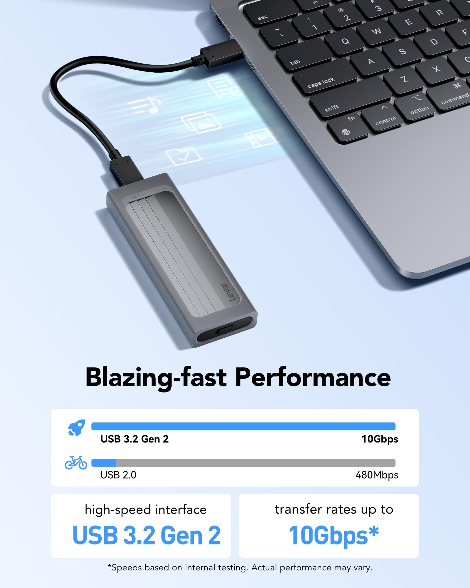 - Protocole USB 3.2 Gen 2 (10 Gbps) ⚡
