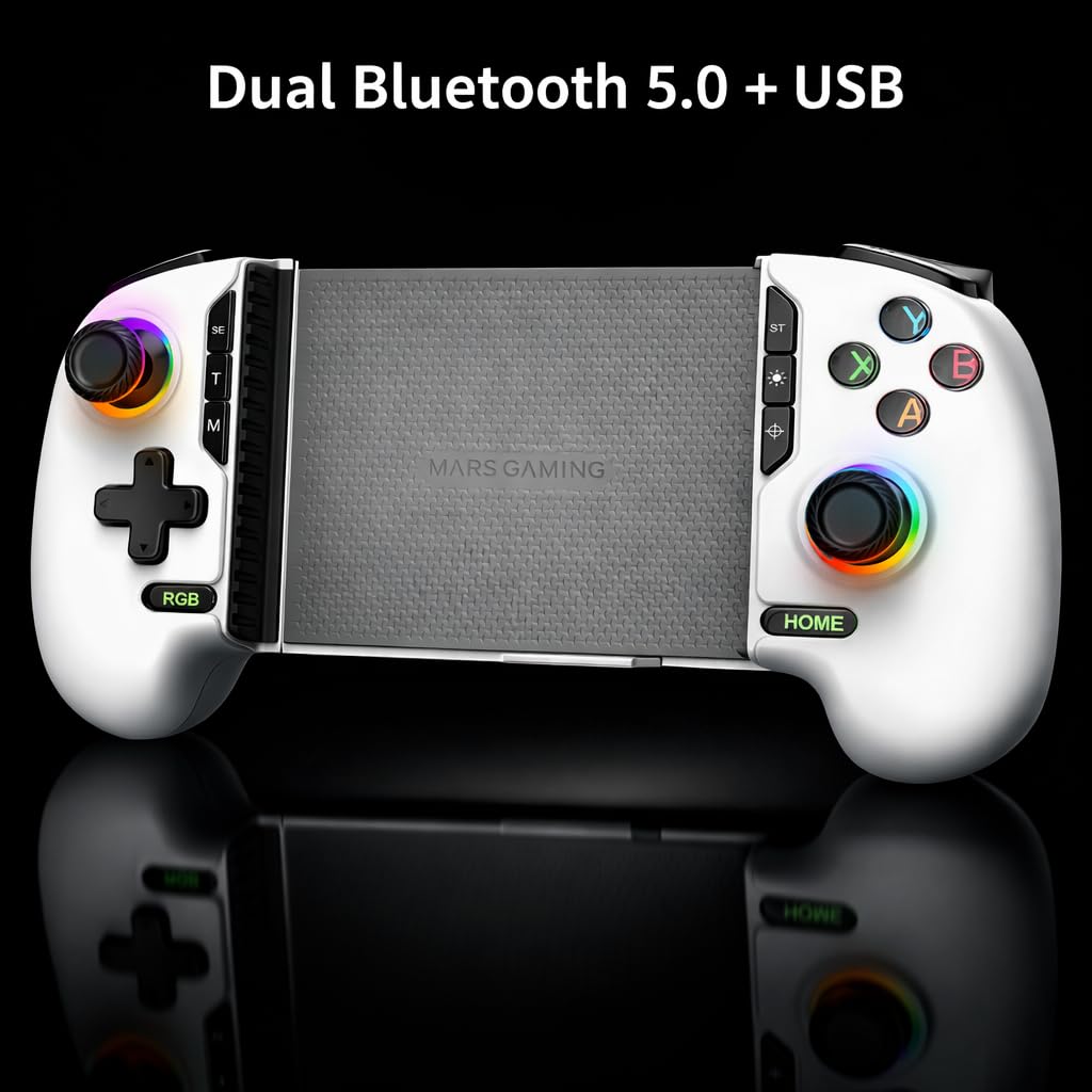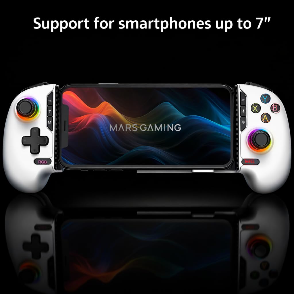 MARS GAMING Manette de jeu Bluetooth MGPX Pro jusqu'à 7 pouces, compatible PS4/Switch/Switch 2/PC/Android/iOS 13.0+, blanche