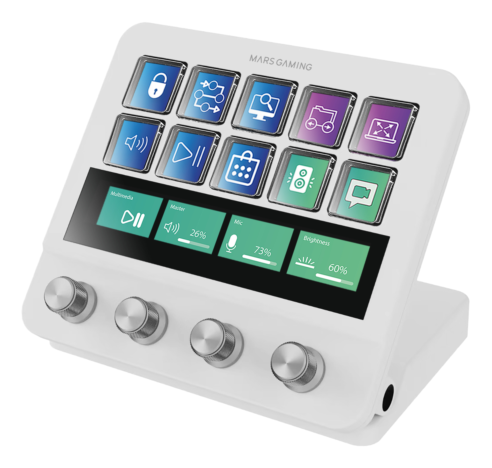 L'ergonomie du MARS GAMING MSD-PRO (Blanc) se distingue par l'intégration de 4 molettes personnalisables, conçues pour faciliter la navigation dans vos menus et ajuster les paramètres en temps réel. Chaque molette offre une rotation précise et un mécanisme robuste, développé pour résister aux usages intensifs. Leur conception innovante permet des ajustements rapides et intuitifs, ce qui en fait un atout majeur dans la gestion de vos outils de streaming. ⚙ La configuration de ces molettes est entièrement personnalisable, s'adaptant automatiquement à vos préférences grâce à des micro-ajustements optimisés par des algorithmes performants.