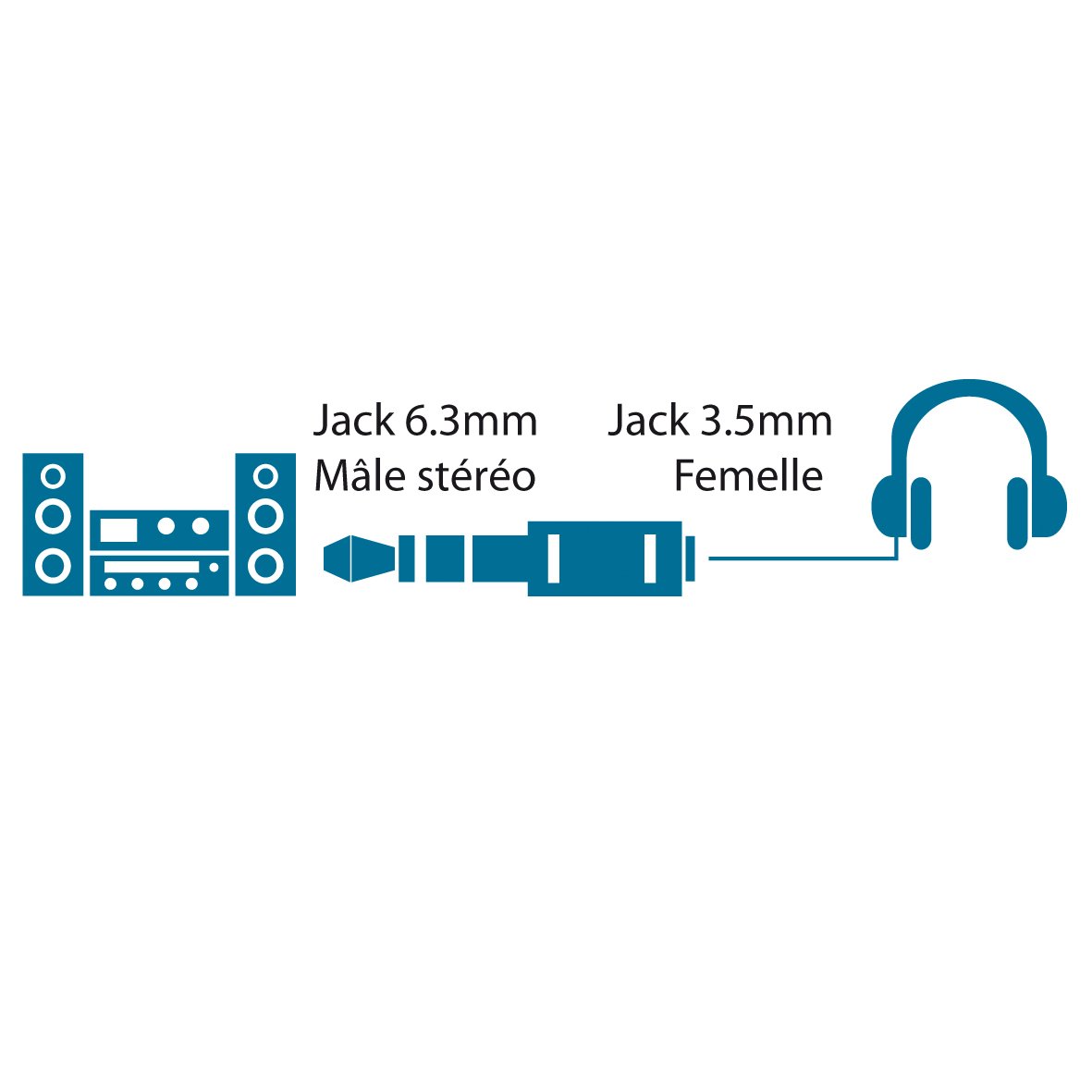 - Type d’adaptateur : stéréo JACK 6.3 mâle ➡ JACK 3.5 femelle