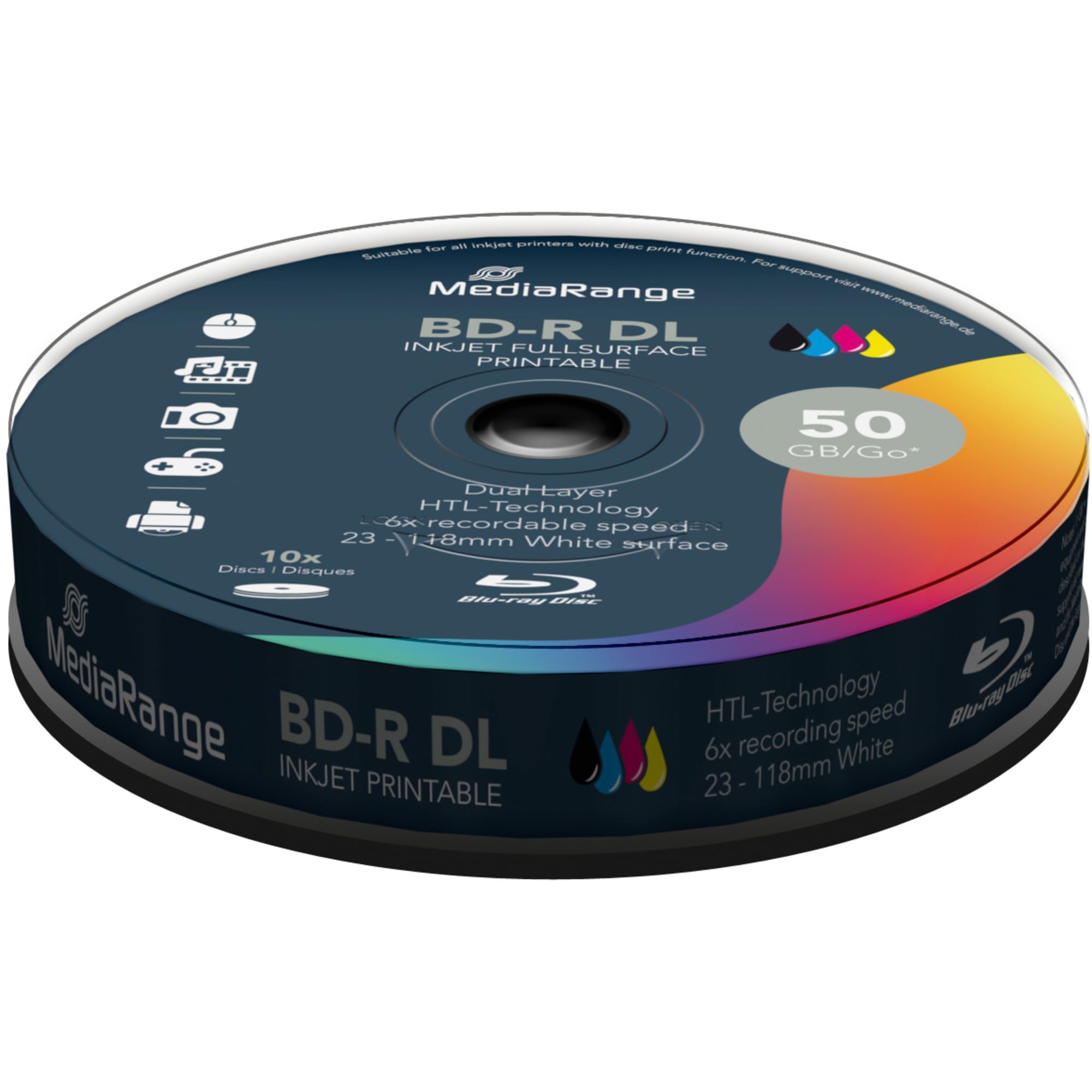 MediaRange Bluray 50GB 10pcs BD-R cake 6x Inkjet Fullprint.