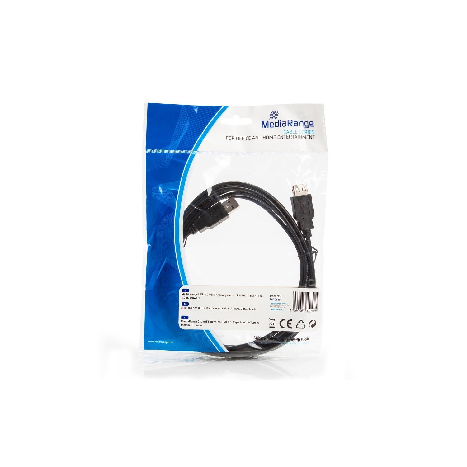 MediaRange Verlängerungskabel USB 2.0 A->A St/Bu 3m schwarz