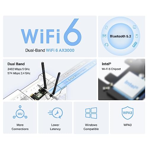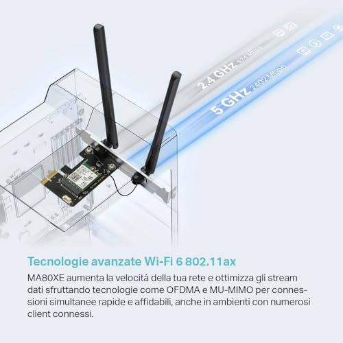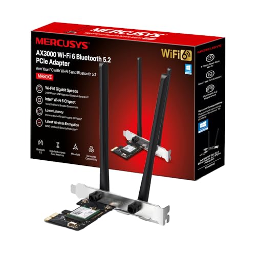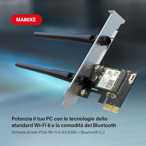 ⚙ Adaptateur PCIe : Mercusys Adaptateur PCIe Bluetooth 5.2 AX3000 WiFi 6 Vitesse 2 402 Mbps (5 GHz) + 574 Mbps