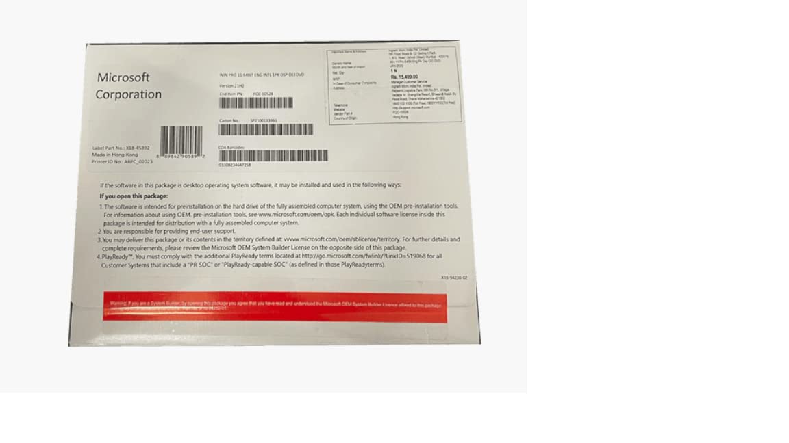 Microsoft Modèle du produit : Windows 11 Professionnel 64 bits OEM (SANS DVD)