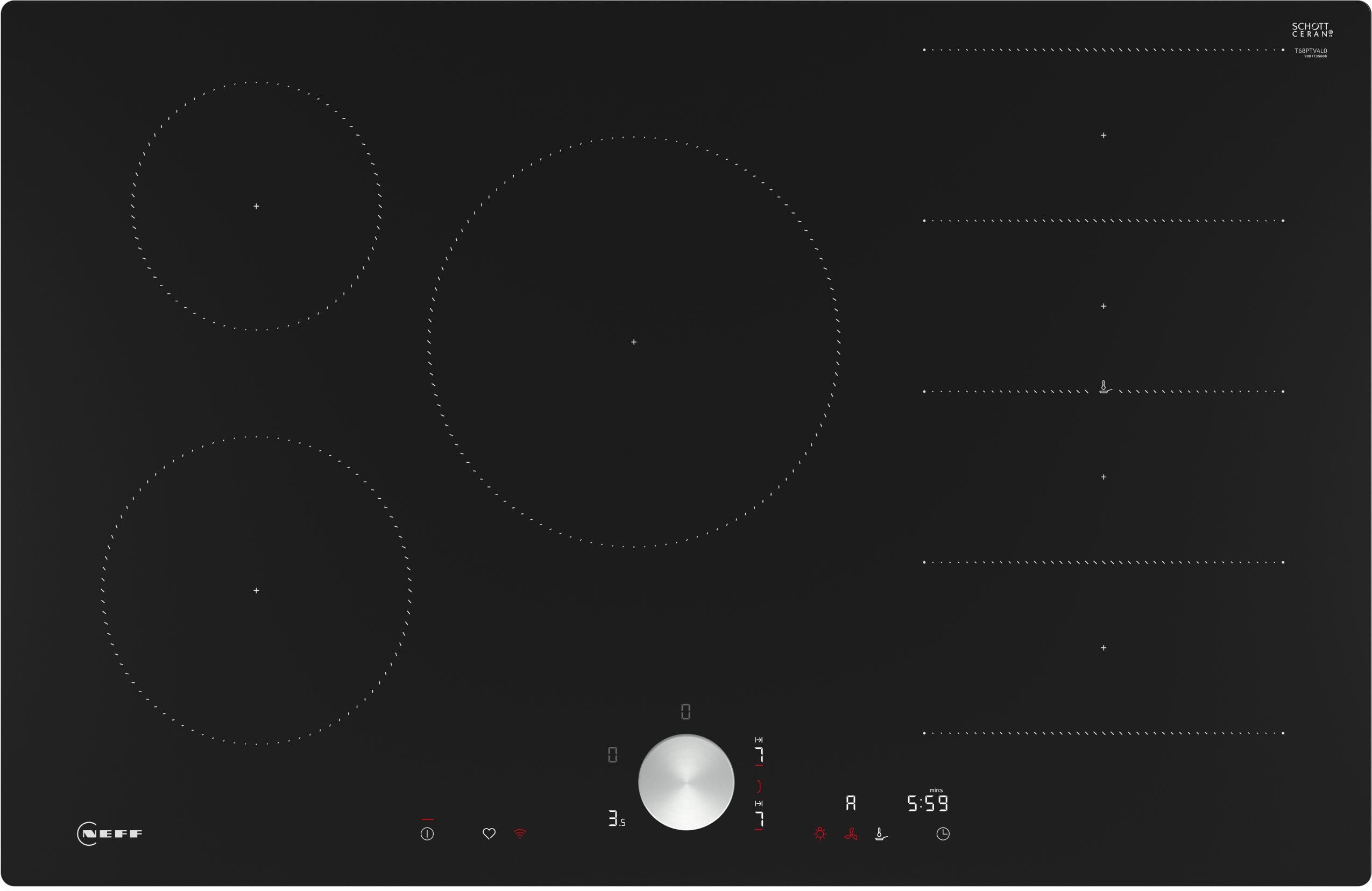 L’élégante surface en verre céramique noire mate du Neff T68PTV4L0 N 90 apporte à la cuisine une touche contemporaine et épurée.