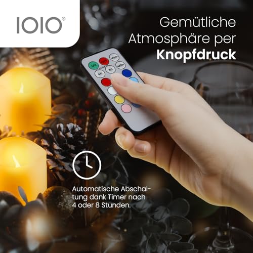 L'Olympia IOIO LED-Wachskerzen Set LED 48 3er Set est conçu pour une facilité d'utilisation inégalée. Chaque set inclut une télécommande multifonction, vous offrant un contrôle total sur votre ambiance lumineuse. Activez ou désactivez les bougies à distance, ajustez l'intensité lumineuse grâce à des niveaux de luminosité réglables, et choisissez entre un mode de flamme stable ou un mode de flamme vacillante réaliste. La fonction de minuterie intégrée est un atout majeur, permettant de programmer l'extinction automatique après 2, 4, 6 ou 8 heures. Cette flexibilité vous permet de personnaliser votre expérience lumineuse sans effort, assurant que l'Olympia IOIO LED-Wachskerzen Set LED 48 3er Set s'adapte parfaitement à votre rythme de vie et à vos préférences.