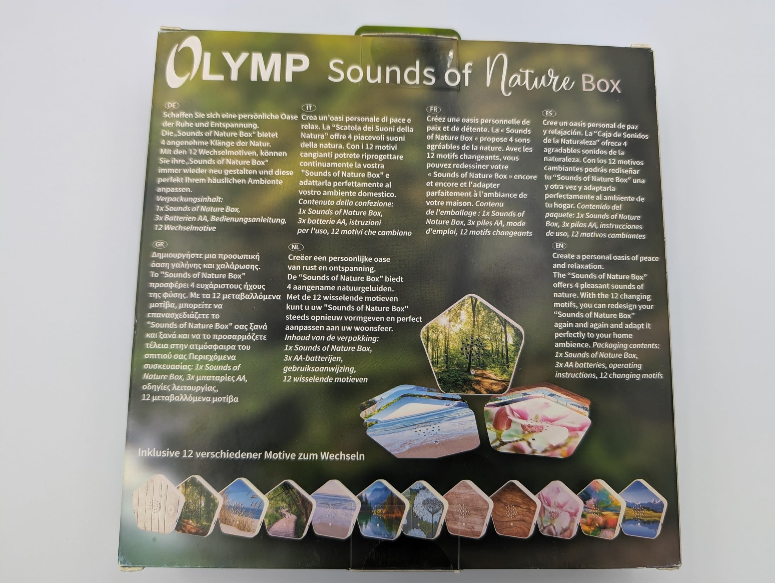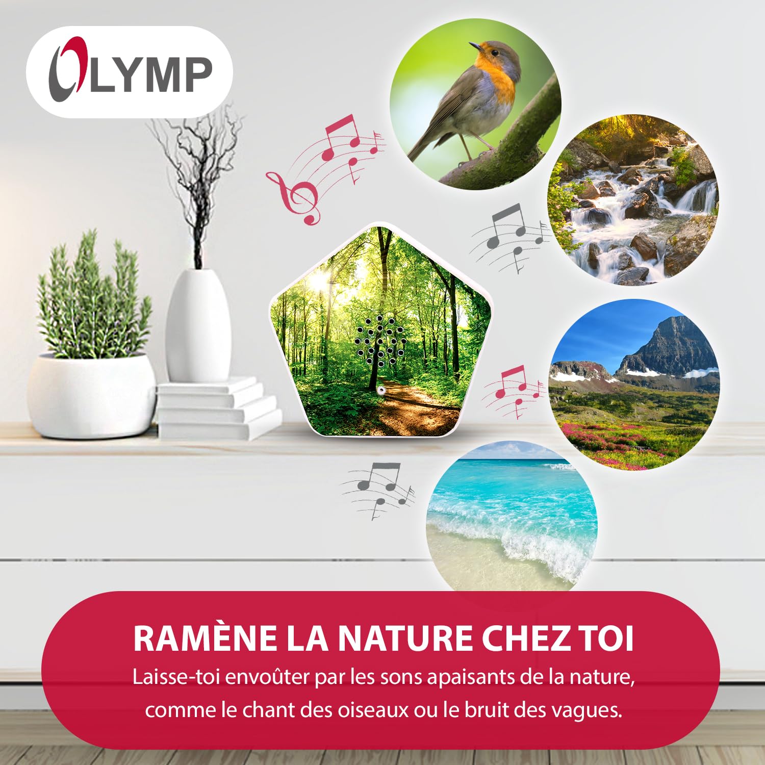 Équipée de haut-parleurs à large bande, l’Olympia Sound of Nature Box délivre un son clair, précis et puissant. Son système de diffusion stéréo 2.1 assure une immersion totale, recréant fidèlement la scène sonore naturelle. Les aigus sont cristallins tandis que les graves restent profonds et contrôlés, offrant un équilibre parfait quel que soit le style musical. Ce rendu sonore haute-fidélité reproduit les ambiances avec une remarquable authenticité, idéale pour les audiophiles exigeants.