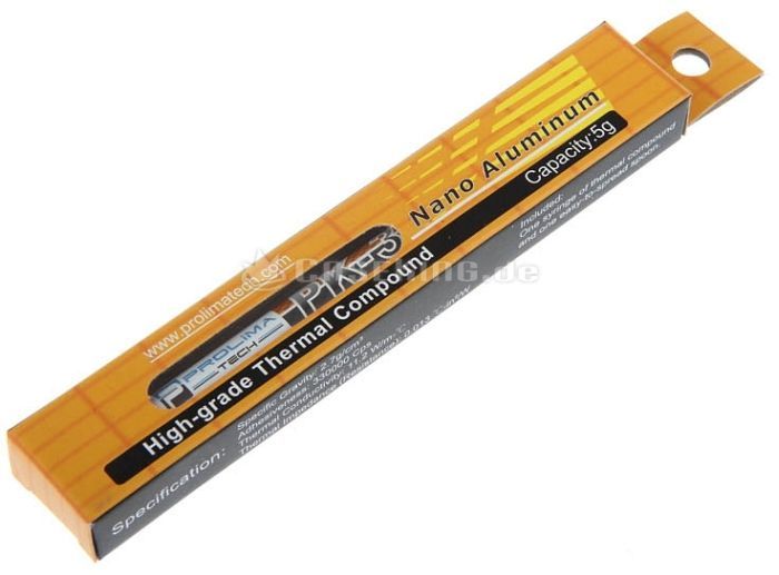Prolimatech compatible PK-3 Nano Aluminium Wärmeleitpaste - 5g Description du produit: Prolimatech PK-3 - 5g Type de produit: Pâte thermique Poids: 5 g Garantie du fabricant: 2 ans