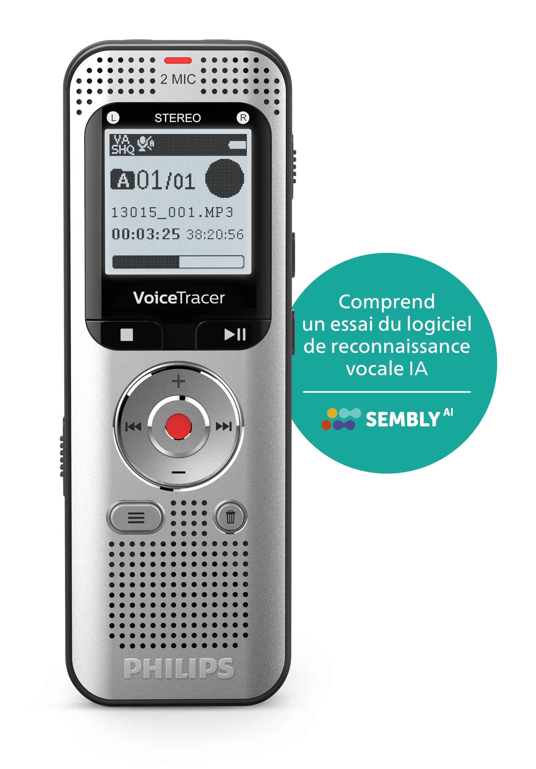 Ce modèle est équipé de la technologie Sembly, une intelligence artificielle avancée destinée à la transcription automatique de vos enregistrements. Chaque fichier audio est converti en texte avec une grande précision, facilitant ainsi la prise de notes et le traitement des informations. Cette fonctionnalité innovante permet d’économiser un temps précieux lors du travail sur des contenus longs ou complexes. La transcription est accessible directement depuis le logiciel compagnon, simplifiant la relecture et le partage.
