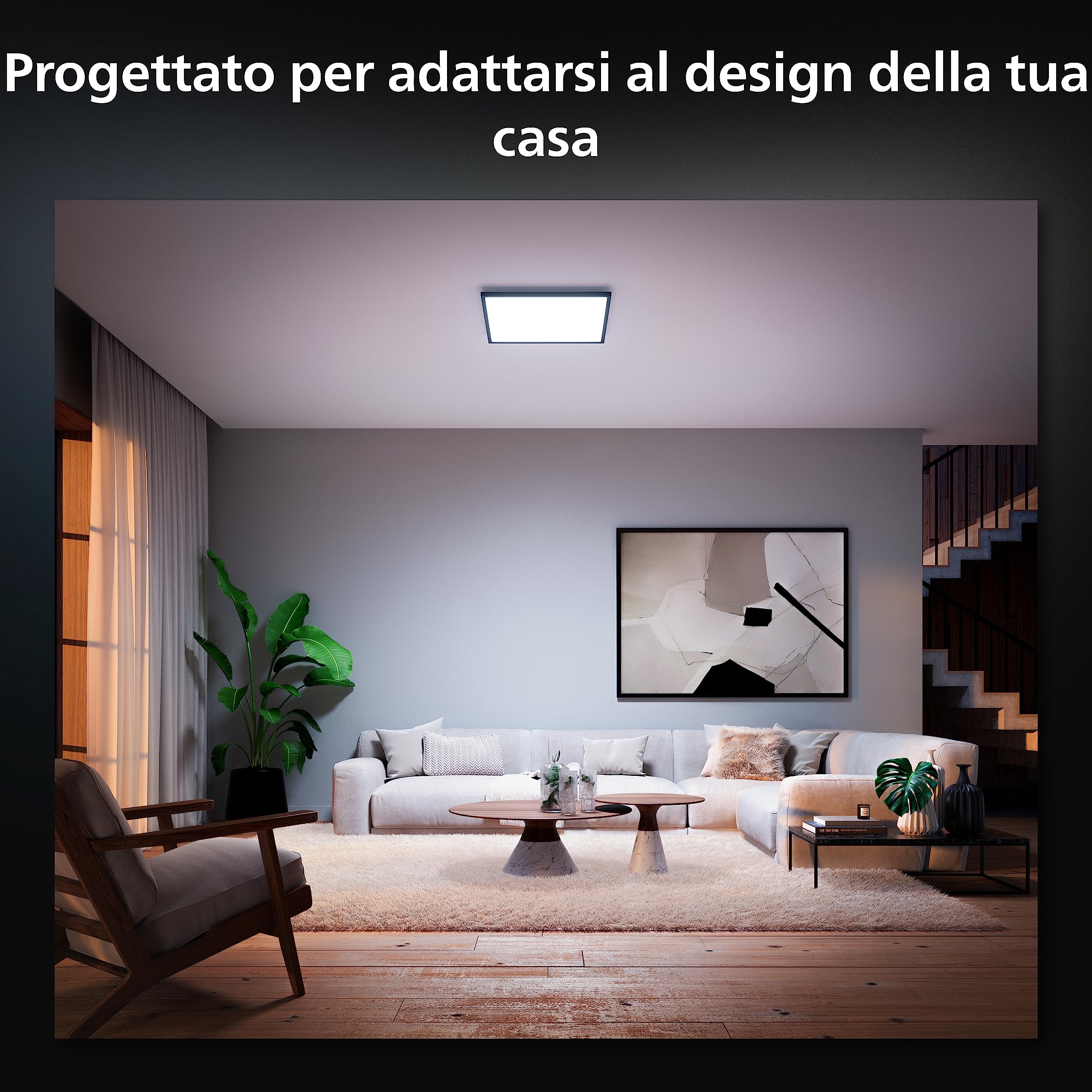 Cette lampe intègre la technologie White Ambiance qui permet de régler la température de couleur du blanc, de 2700K (blanc chaud) à 6500K (blanc froid). Cette fonctionnalité offre la possibilité d’adapter l’éclairage en fonction des différents moments de la journée, améliorant ainsi le confort visuel et le bien-être. La puissance lumineuse atteint jusqu’à 3200 lumens, garantissant un éclairage intense et efficace.