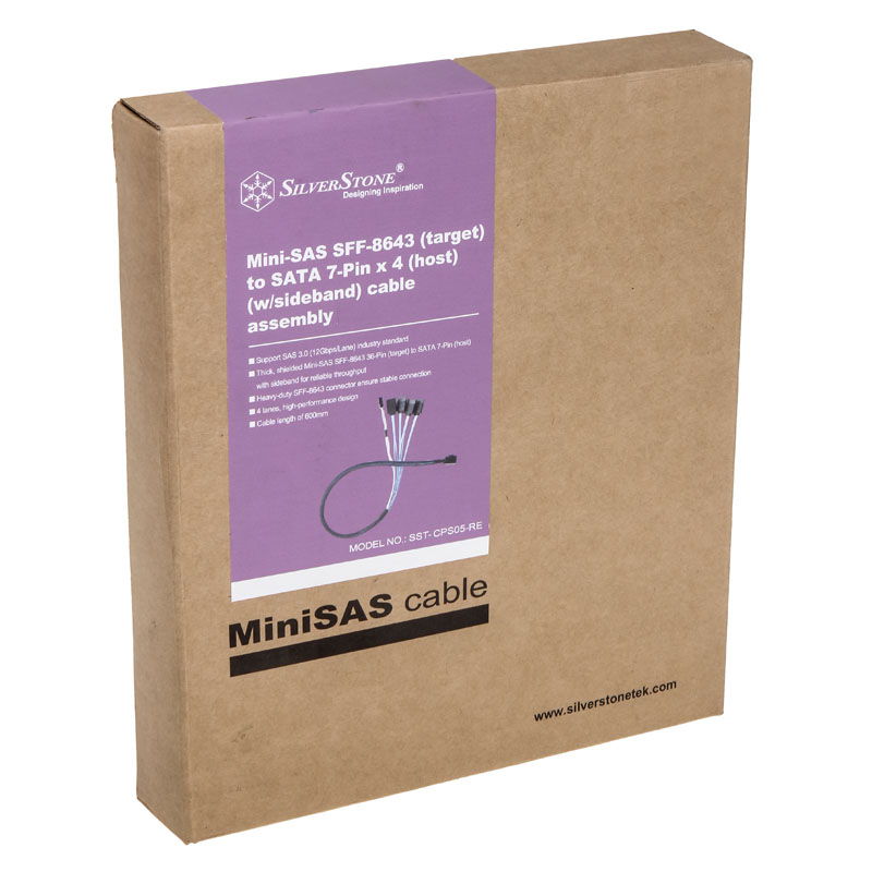 5. SILVERSTONE Câble Mini-SAS SFF-8643 vers 4x SATA 0.6 m