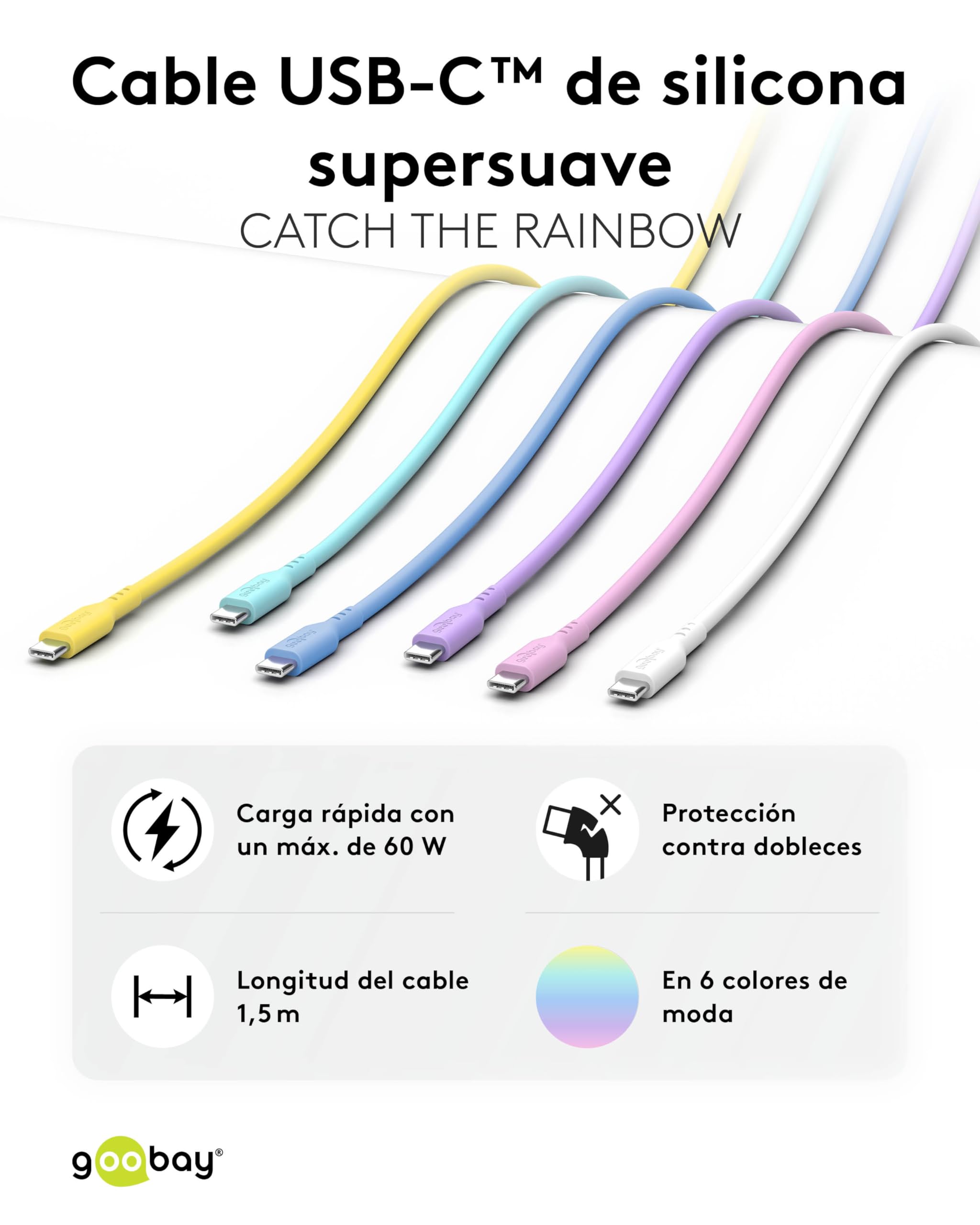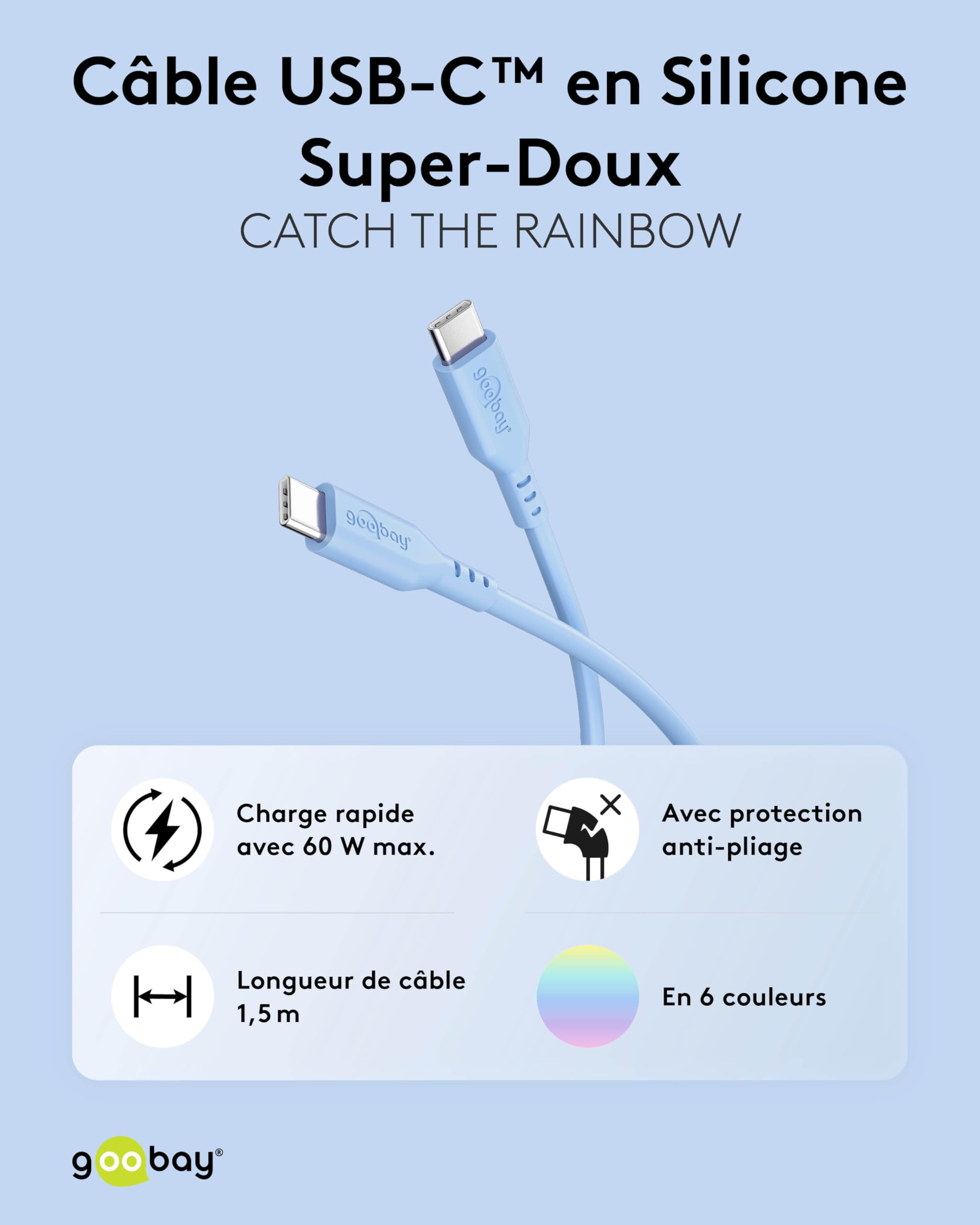 Goobay Câble de Charge USB-C vers USB-C 2.0 Silicone Souple Bleu