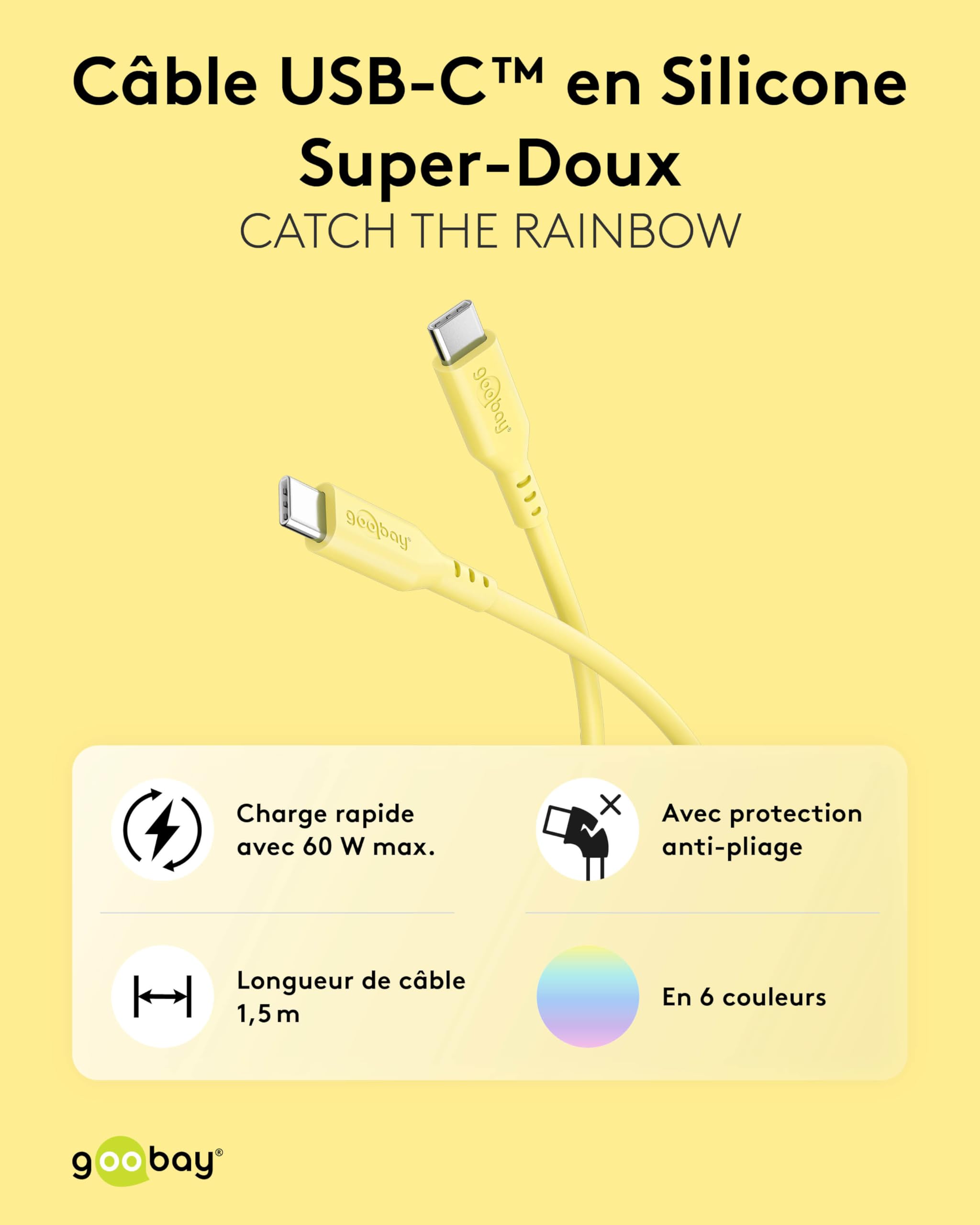 Goobay Câble USB-C vers USB-C en Silicone Souple Jaune USB 2.0