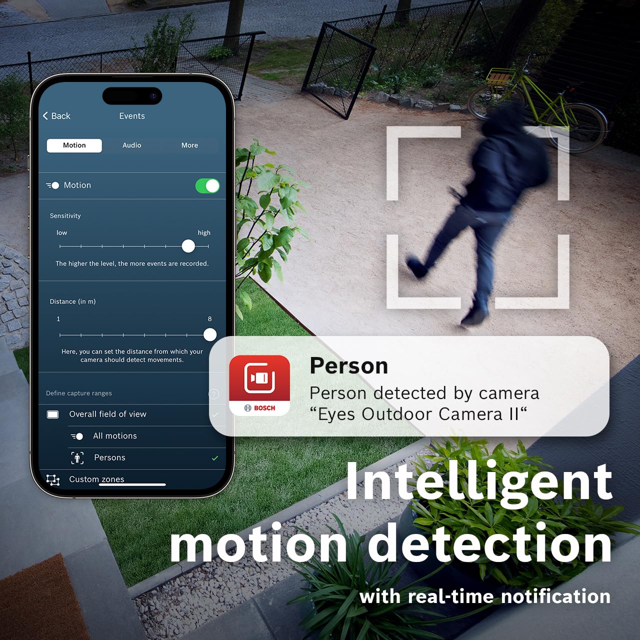 La Bosch Smart Home Eyes Außenkamera II propose une capture vidéo en 1920 x 1080, offrant ainsi une qualité d’image exceptionnelle et des détails précis pour chaque scène. Grâce à un système de capteur avancé et à une cadence de 30 images par seconde, elle assure une fluidité exemplaire dans la vidéo, minimisant les flous lors des mouvements rapides. La technologie embarquée permet d’optimiser l’exposition et d’améliorer la clarté dans diverses conditions d’éclairage, tant en journée qu’en soirée. Ceci garantit une surveillance constante et fiable de votre environnement, que ce soit pour surveiller une entrée, un jardin ou une allée.