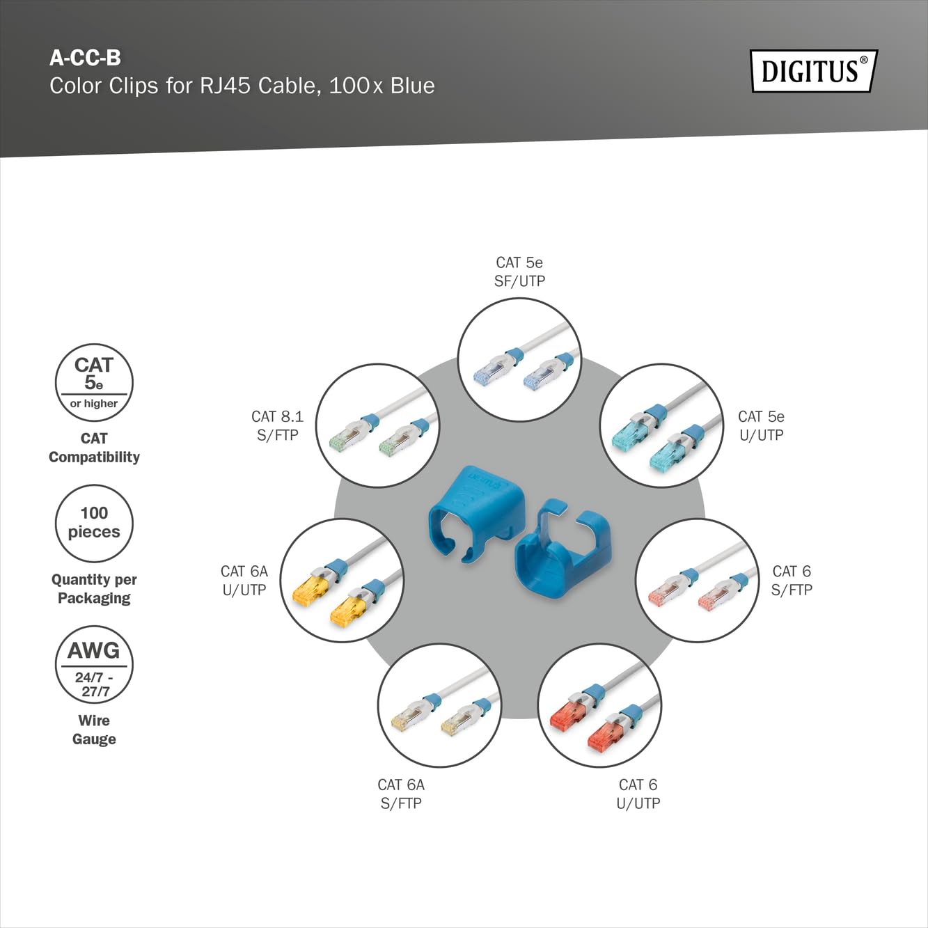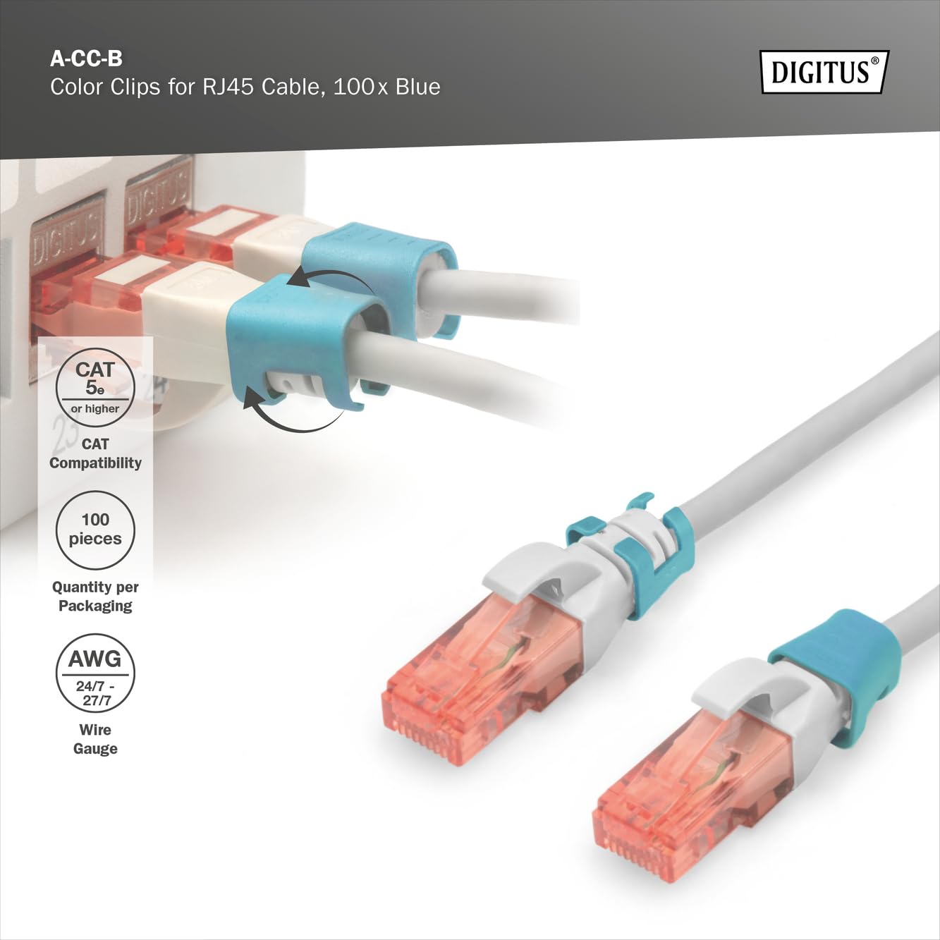 - Désignation DIGITUS Farbclips für Patchkabel RJ45 100 Stück bleu