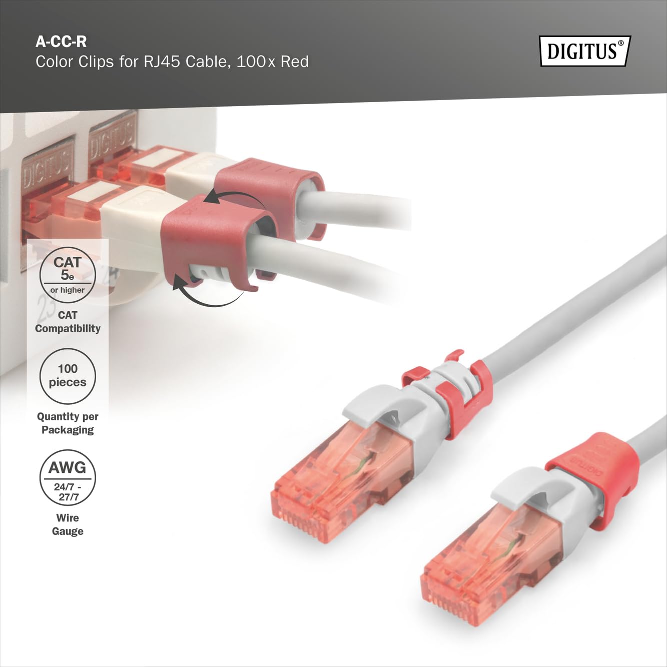 5. DIGITUS DIGITUS Farbclips für Patchkabel RJ45 100 Stück rot