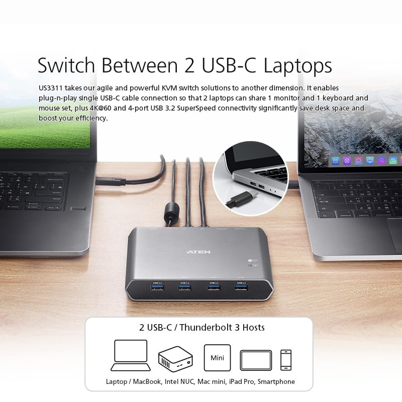 - Modèle Aten 2-Port USB-C 4K DisplayPort KVM Dock Switch ✔