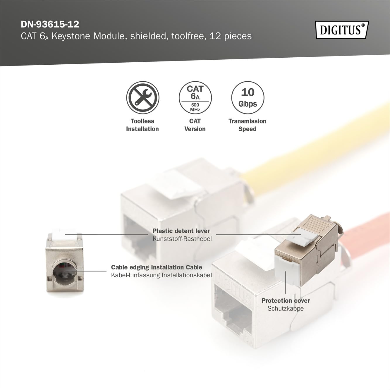 Le module DIGITUS CAT 6A Keystone Modul geschirmt werkzeugfrei 12 Stk. constitue une solution technique avancée.
