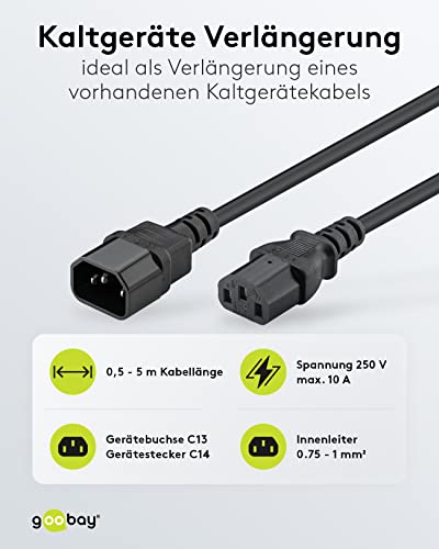 Goobay Câble de Rallonge d'Alimentation IEC C13 vers C14 pour PC et Moniteur