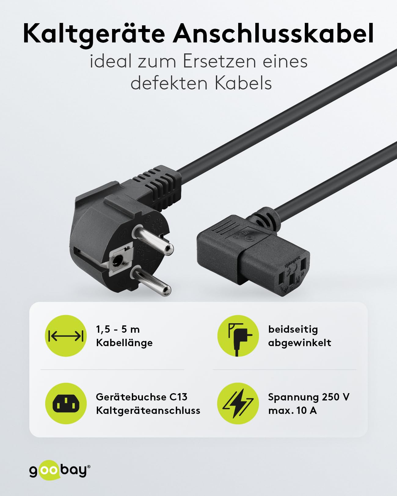 Goobay Câble d'Alimentation Secteur Double Coudé pour PC et Boîtier Externe