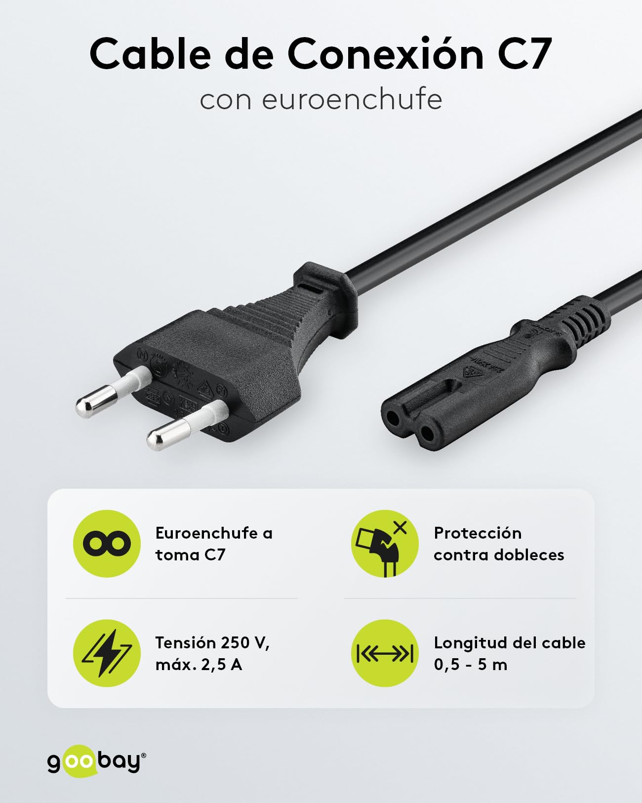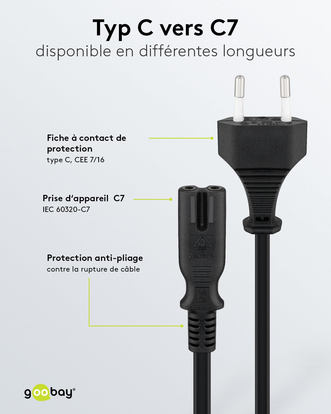 Goobay Câble d'Alimentation Secteur Prise Euro vers Bipolaire pour Ordinateur Portable